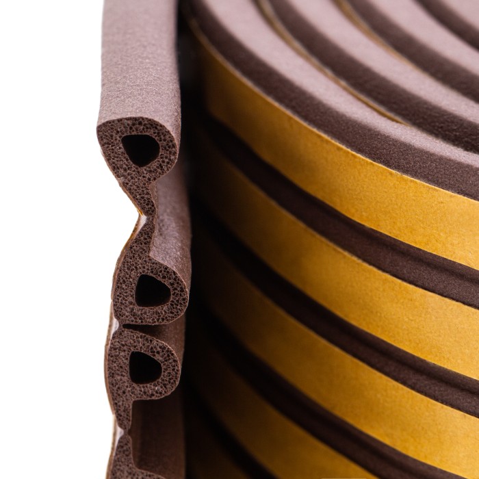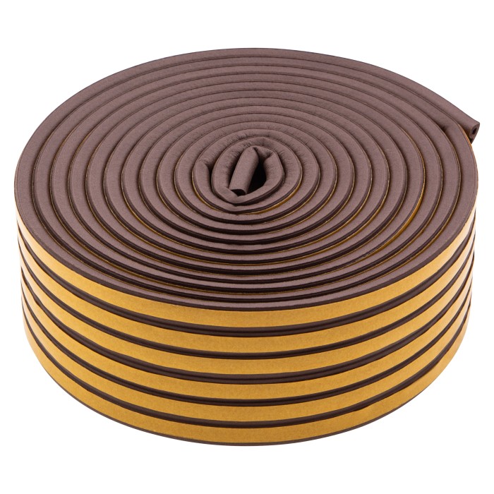 Коричневый резиновый уплотнитель Сибртех 88902 длиной 24 м, с профилем «P», предназначен для герметизации и уплотнения оконных и дверных блоков с целью предотвращения сквозняков и вибраций, защиты от влаги и пыли, создан...