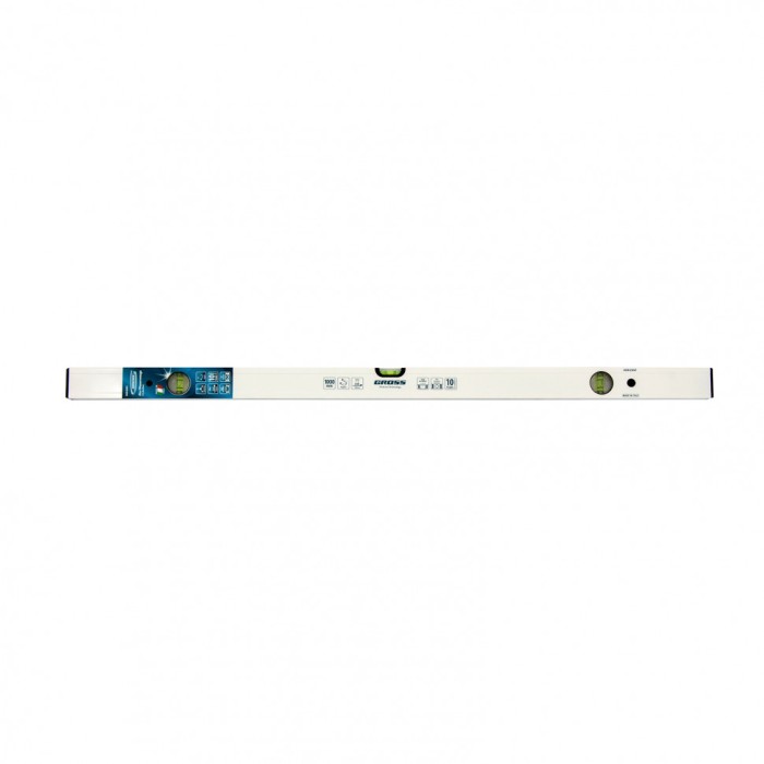 Уровень алюминиевый фрезерованный Gross 33673 длиной 1000 мм, магнитный, с 3 глазками, — незаменимый инструмент в быту и на строительной площадке. Позволяет выявить погрешности измерений, отклонения от заданной вертикали и горизонтали.ПреимуществаКонструкционная прочность — инструмент изготовлен из алюминиевого профиля, пузырьковые камеры имеют двойные стенки.Фиксация на металлических поверхностях — производитель предусмотрел встроенные магниты.Погрешность 05 мм/м — базовая поверхность уровня фрезерована, пузырьковые ампулы установлены с электронным контролем точности.Гарантированное качество — инструмент изготовлен в Италии под строгим технологическим контролем.Для определения отклонения вертикали 90° необходимо использовать пузырьковую ампулу только в верхнем положении уровня. Только базовая поверхность (противоположная ампуле 180°) является рабочей.
