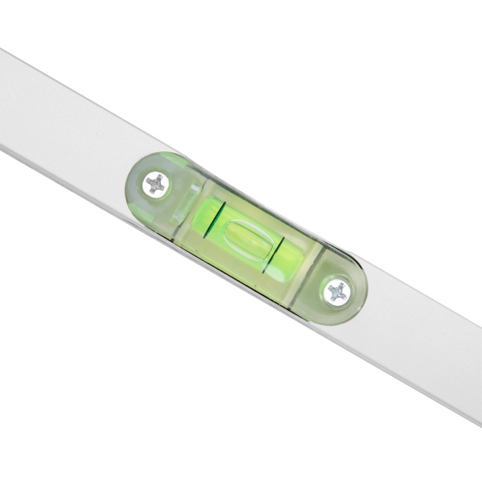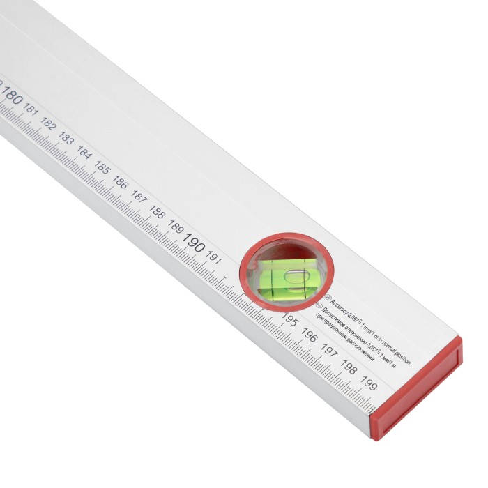 Алюминиевый уровень Sparta 331415 длиной 2000 мм, с 3 глазками и линейкой, используется на строительной площадке и во время ремонта. Повышает точность выполнения облицовочных, отделочных и других работ, позволяя проверить отклонения по горизонтали и вертикали, измерить угол наклона, выровнять поверхности и предметы.ПреимуществаНадежность — уровень из алюминиевого профиля с анодированным покрытием прослужит долго.Продуманная конструкция — торцевые заглушки не допускают попадания пыли и мелкого строительного мусора внутрь корпуса.Высокая точность выполняемых работ — погрешность составляет всего 1 мм на каждый метр (0,057°).Дополнительные возможности — измерительная шкала позволяет определять габариты предметов.Для определения отклонения вертикали 90° необходимо использовать пузырьковую ампулу только в верхнем положении уровня. Только базовая поверхность (противоположная ампуле 180°) является рабочей.