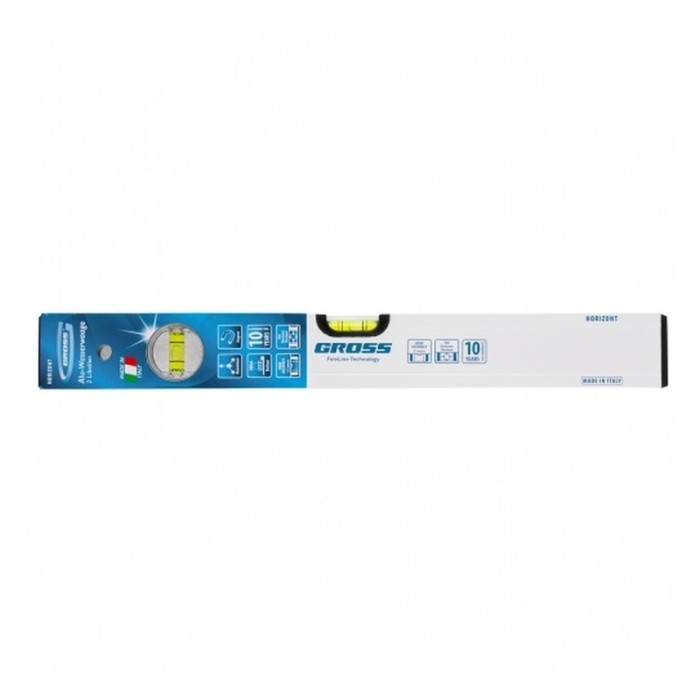 Уровень алюминиевый фрезерованный Gross 33670 длиной 400 мм, магнитный, с 2 глазками, служит для выявления отклонений от заданной горизонтали и вертикали. Используется при проведении строительных и ремонтных работ по укладке покрытий, отделке поверхностей, монтажу конструкций и т. д.ПреимуществаПрочность и высокий ресурс — инструмент изготовлен из алюминиевого профиля и снабжен ударопрочными пузырьковыми камерами с двойными стенками.Надежная фиксация на стальных поверхностях — уровень оснащен встроенными магнитами.Высокая точность измерений — базовая поверхность отфрезерована, погрешность составляет 0,5 мм/м.Возможность подвесного хранения — в корпусе имеется специальное отверстие.Гарантированное качество — инструмент изготовлен в Италии с соблюдением всех технологических норм, установка пузырьковых ампул произведена под электронным контролем.Для определения отклонения вертикали 90° необходимо использовать пузырьковую ампулу только в верхнем положении уровня. Только базовая поверхность (противоположная ампуле 180°) является рабочей.