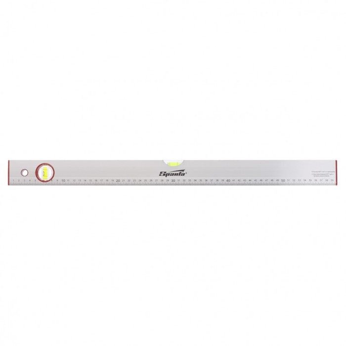 Алюминиевый уровень Sparta 35106 длиной 600 мм, с 2 глазками и линейкой, рассчитан на применение в быту и в производственных условиях. Он поможет добиться точного выстраивания разметочных линий для последующей установки конструкций, полок, укладки облицовочных материалов и т.д. Две пузырьковые ампулы обеспечивают точный контроль отклонений поверхностей от горизонтальной и вертикальной плоскостей.,Для определения отклонения вертикали 90 градусов необходимо использовать пузырьковую ампулу только в верхнем положении уровня. Только базовая поверхность является рабочей (противоположная ампуле 180 градусов).ПреимуществаАнодированный алюминиевый профиль, из которого выполнен уровень, отличается прочностью и антикоррозионными свойствами.На корпусе имеется шкала, позволяющая осуществлять линейные измерения.Благодаря отверстию в корпусе инструмент можно хранить в подвешенном виде.
