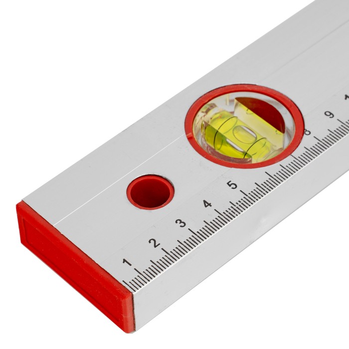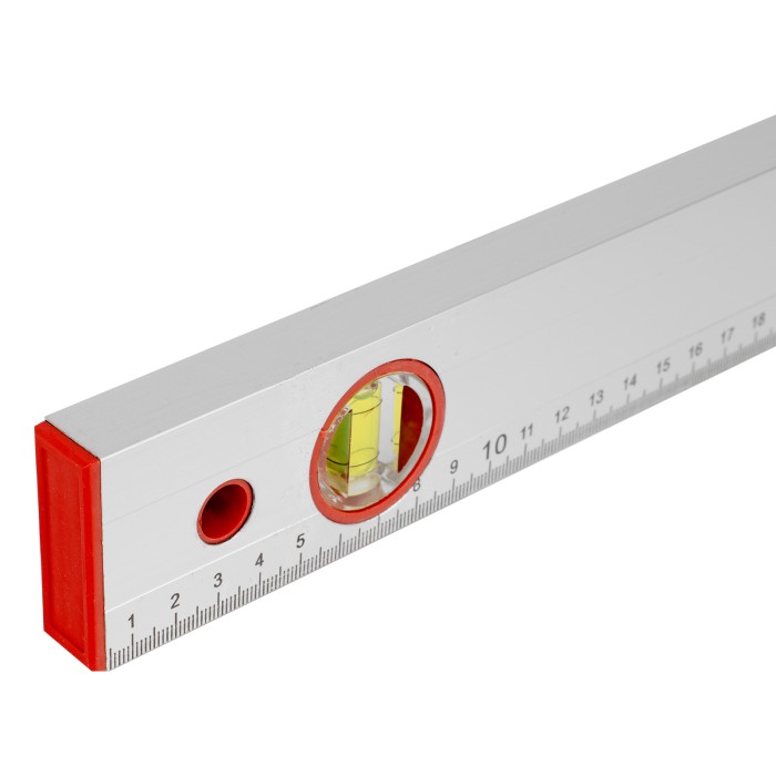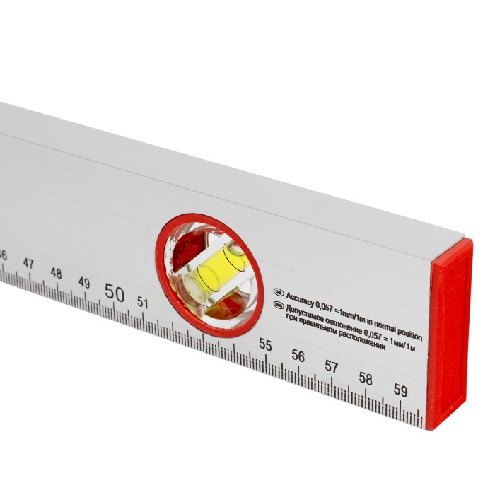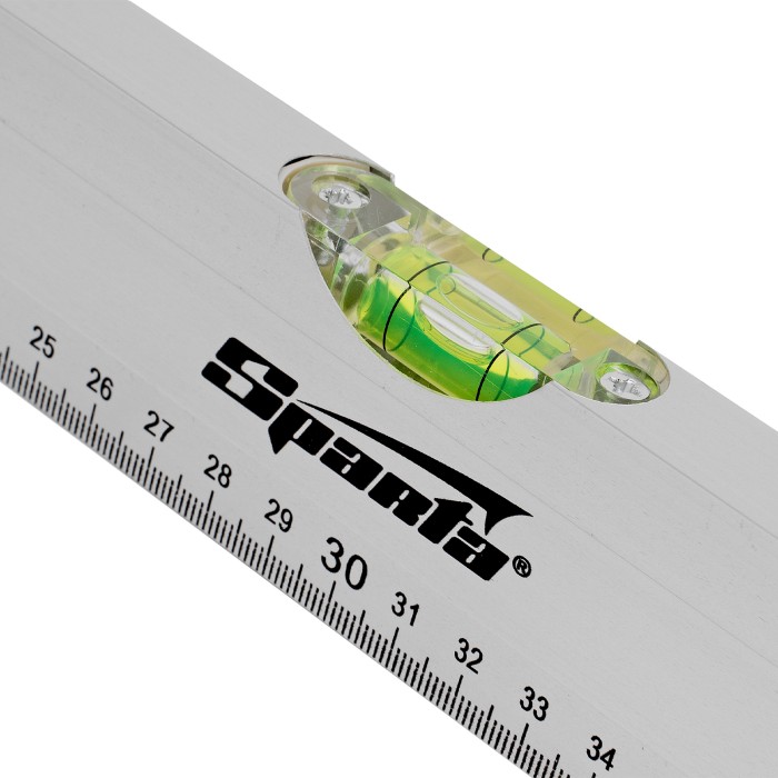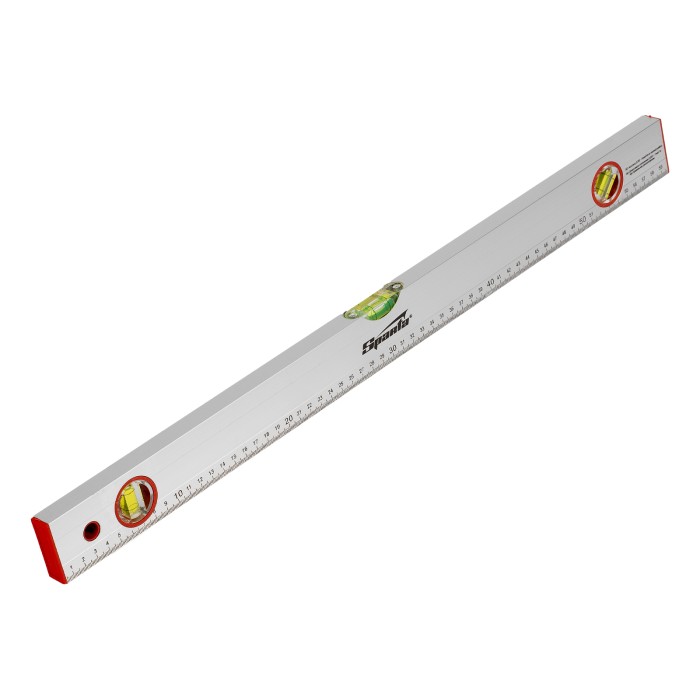 Алюминиевый уровень Sparta 331235 длиной 600 мм, с 3 глазками и линейкой, используется на строительной площадке и во время ремонта. Повышает точность выполнения облицовочных, отделочных и других работ, позволяя проверить отклонения по горизонтали и вертикали, измерить угол наклона, выровнять поверхности и предметы.ПреимуществаНадежность — уровень из алюминиевого профиля с анодированным покрытием прослужит долго.Продуманная конструкция — торцевые заглушки не допускают попадания пыли и мелкого строительного мусора внутрь корпуса.Высокая точность выполняемых работ — погрешность составляет всего 1 мм на каждый метр (0,057°).Дополнительные возможности — измерительная шкала позволяет определять габариты предметов.Для определения отклонения вертикали 90° необходимо использовать пузырьковую ампулу только в верхнем положении уровня. Только базовая поверхность (противоположная ампуле 180°) является рабочей.