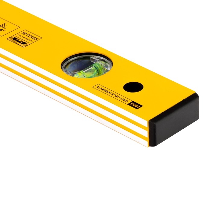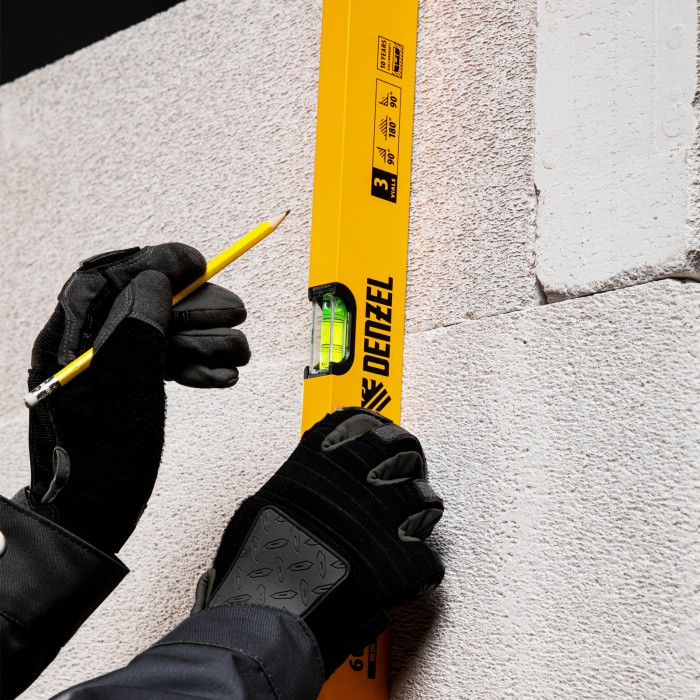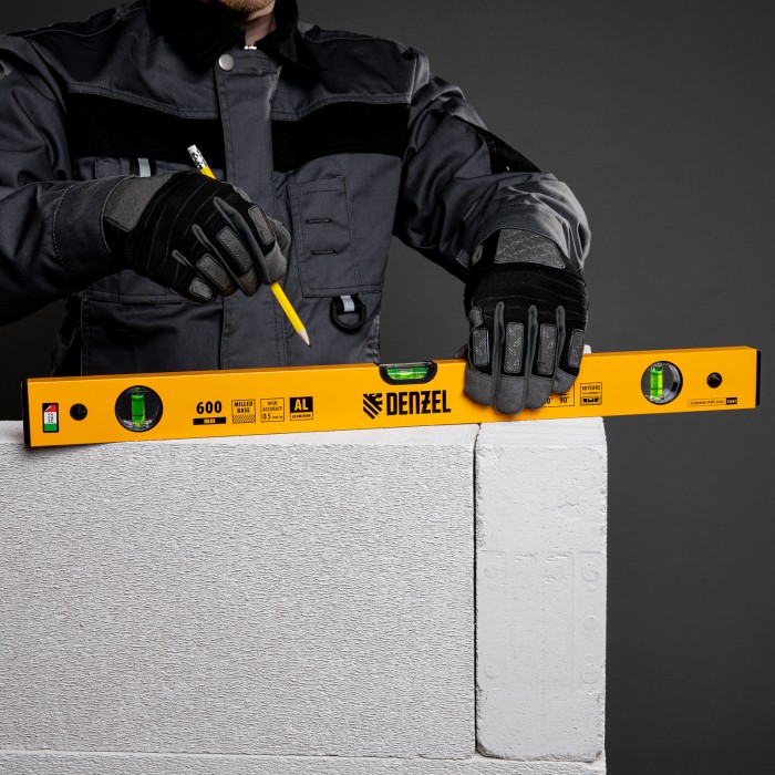 Алюминиевый фрезерованный уровень Denzel 33681 длиной 600 мм, с 3 глазками, используется для контроля вертикальных и горизонтальных плоскостей. Позволяет получить качественный результат при выполнении строительных и отделочных работ.ПреимуществаНадежность и долговечность — инструмент изготовлен из алюминиевого профиля.Ударопрочность — ампулы имеют прочные стенки из поликарбоната.Невысокая погрешность 0,5 мм/м — базовая поверхность фрезерована.Высокое качество — пузырьковые ампулы установлены с использованием электронного контроля точности.Для определения отклонения вертикали 90° необходимо использовать пузырьковую ампулу только в верхнем положении уровня. Только базовая поверхность (противоположная ампуле 180°) является рабочей.
