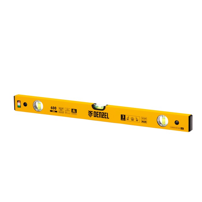 Уровень алюминиевый, 600 мм, фрезерованный, 3 глазка Denzel