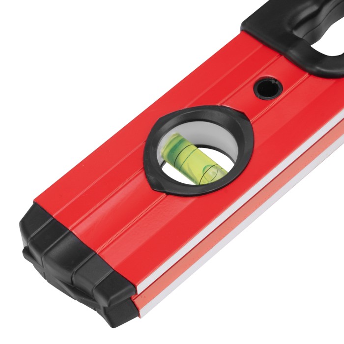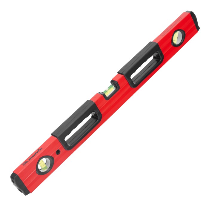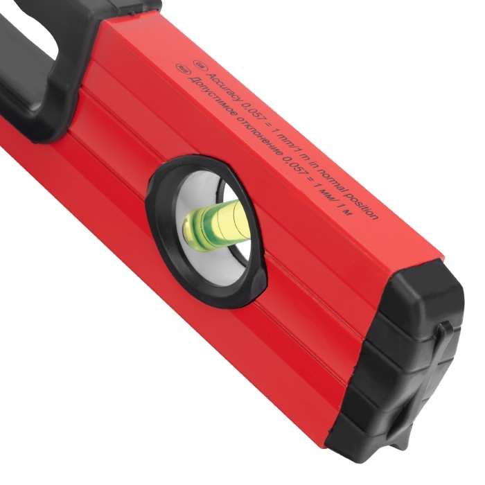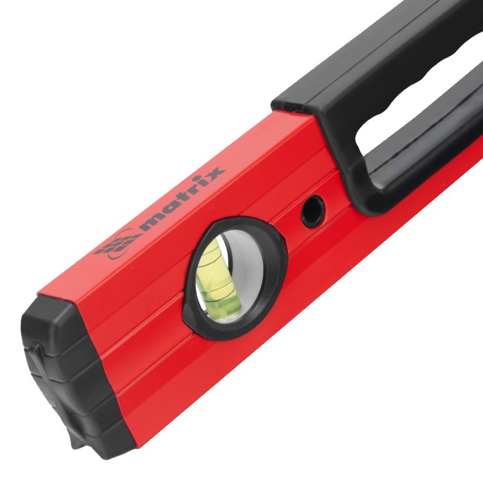 Фрезерованный алюминиевый уровень Matrix 33221 длиной 600 мм, с 3 глазками и 2 эргономичными ручками, поможет проверить горизонтальные и вертикальные поверхности, выставить угол 45 градусов. Он будет полезен на любом этапе строительства и ремонта: при облицовке и отделке поверхностей, монтаже конструкций и т.д. Погрешность измерений на метр не превышает 1 мм (0,057 градуса).,Для определения отклонения вертикали 90 градусов необходимо использовать пузырьковую ампулу только в верхнем положении уровня. Только базовая поверхность является рабочей (противоположная ампуле 180 градусов).ПреимуществаДолговечность — корпус изготовлен из легкого, но прочного алюминиевого профиля.Надежность — глазки уровня выполнены из акрила, по обеим сторонам корпуса имеются резиновые заглушки, предотвращающие попадание пыли и мелкого мусора.Удобство работы — строительный уровень оснащен эргономичными рукоятками.V-образная подошва — форма уровня позволяет делать замеры на трубах.Высокая точность — рабочая плоскость прибора фрезерована.Измерительная шкала — строительный уровень можно использовать в качестве линейки.