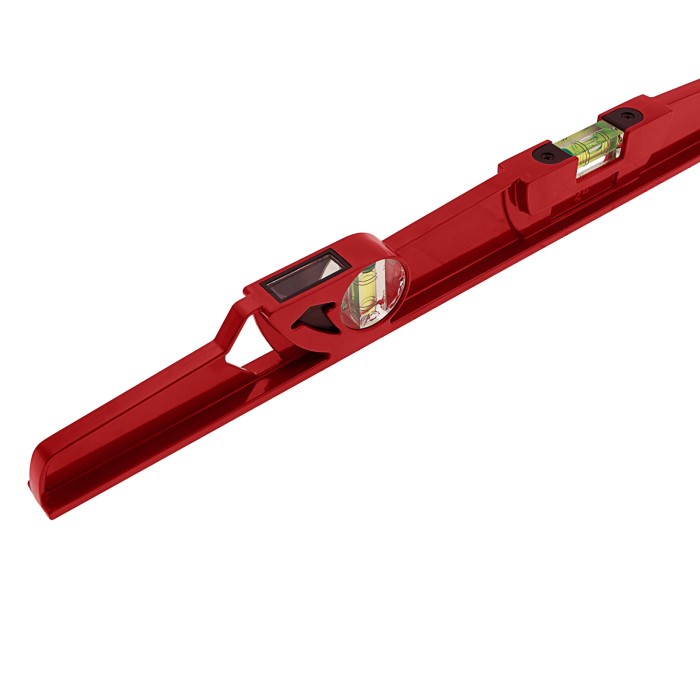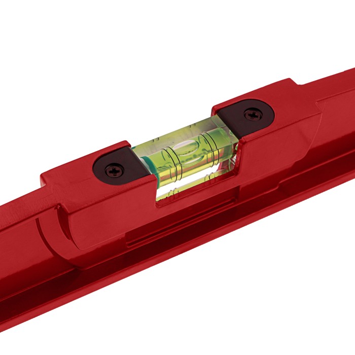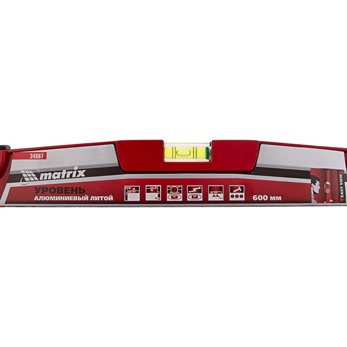 Литой алюминиевый уровень Matrix 34907 длиной 600 мм, с ударной площадкой, оснащен 2 глазками, 1 из которых фронтальный. Инструмент предназначен для использования на строительной площадке, выполнения ремонтных и монтажных работ. Оптимален для выравнивания плитки и кирпичной кладки.ПреимуществаПрочность и долговечность — цельнометаллический алюминиевый профиль устойчив к металлическим нагрузкам.Функциональность — ударная площадка позволяет наносить несильные удары резиновой киянкой для дополнительного выравнивания материала.Удобная эксплуатация — вертикальный глазок с зеркальным отражателем облегчает считывание результатов.Высокая точность измерений — каждый глазок имеет 4 дополнительные насечки.Быстрый поиск нужного уровня — инструмент снабжен двухсторонним информационным вкладышем, на корпусе имеются пиктограммы с обозначением основных характеристик.