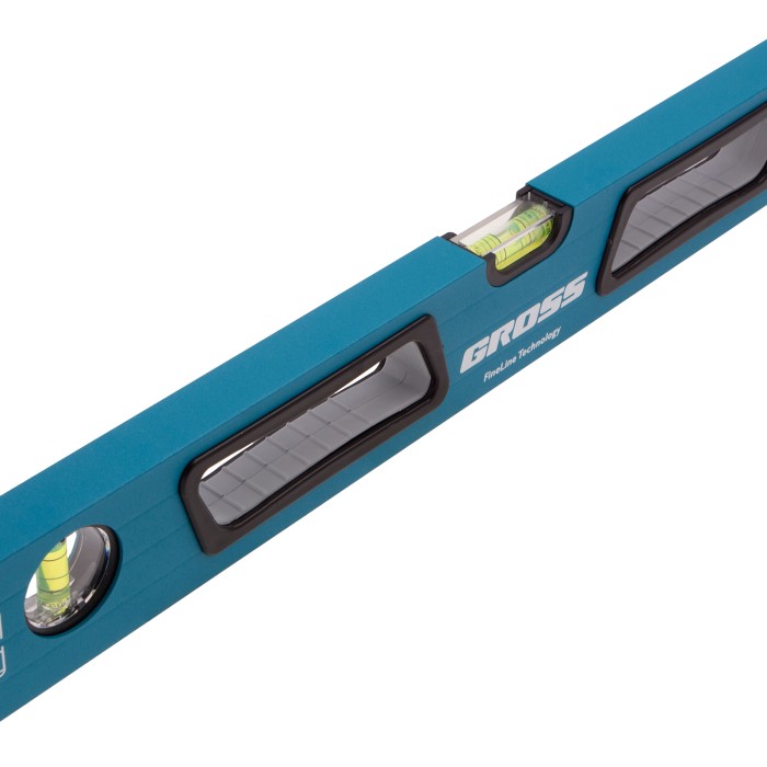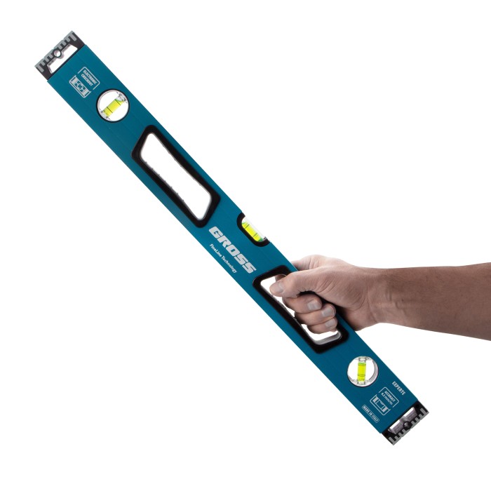 Уровень алюминиевый, 600 мм, усиленный с ударопрочными заглушками, рукоятки, 3 глазка Gross