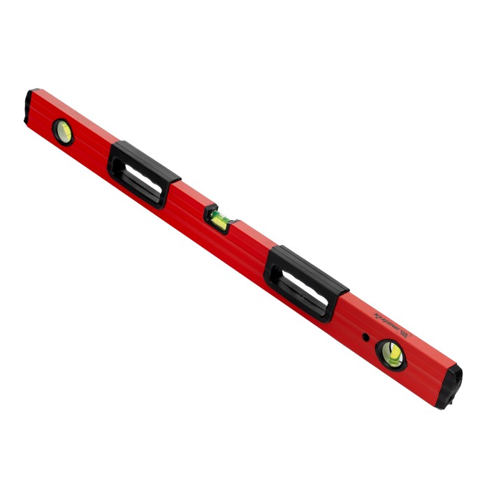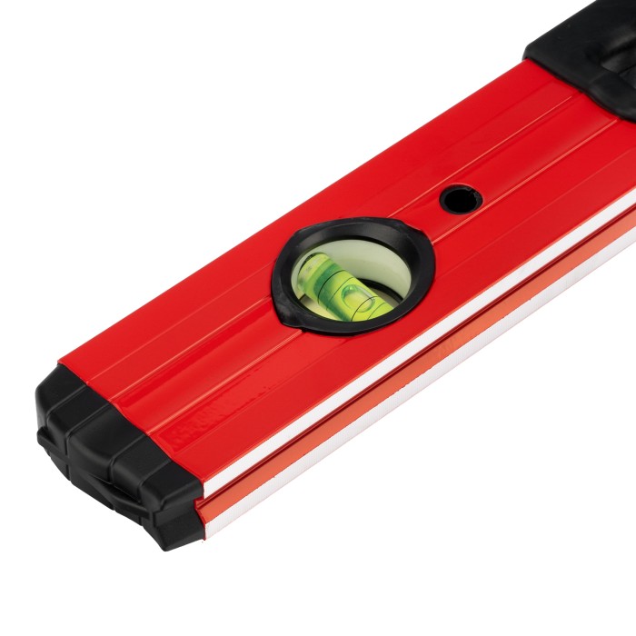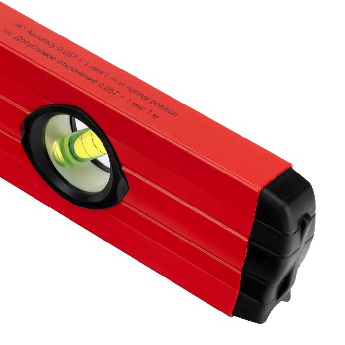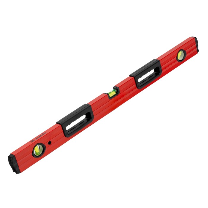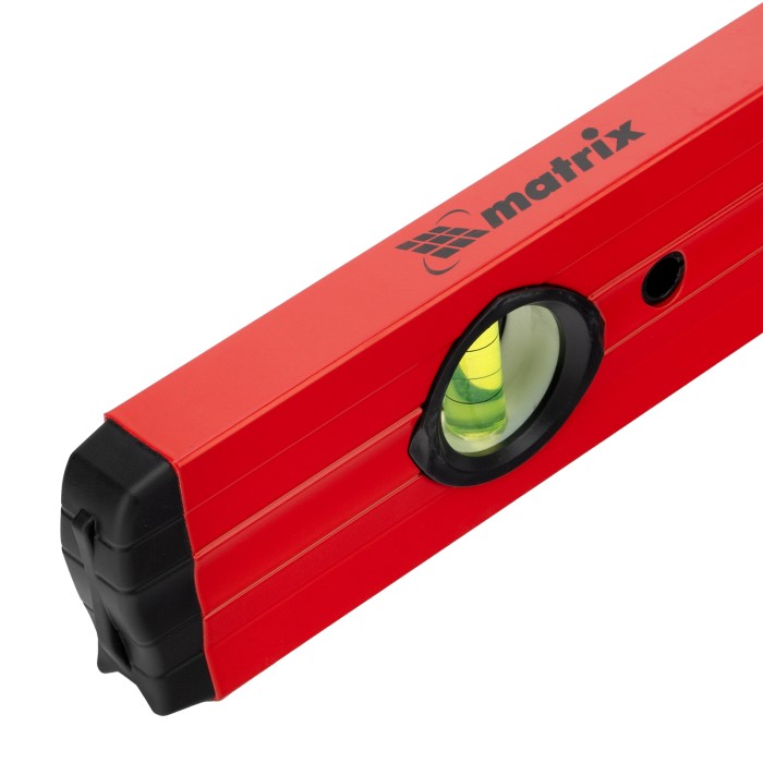 Фрезерованный алюминиевый уровень Matrix 33224 длиной 800 мм, с 3 глазками и 2 эргономичными ручками, поможет проверить горизонтальные и вертикальные поверхности, выставить угол 45 градусов. Он будет полезен на любом этапе строительства и ремонта: при облицовке и отделке поверхностей, монтаже конструкций и т.д. Погрешность измерений на метр не превышает 1 мм (0,057 градуса).,Для определения отклонения вертикали 90 градусов необходимо использовать пузырьковую ампулу только в верхнем положении уровня. Только базовая поверхность является рабочей (противоположная ампуле 180 градусов).ПреимуществаДолговечность — корпус изготовлен из легкого, но прочного алюминиевого профиля.Надежность — глазки уровня выполнены из акрила, по обеим сторонам корпуса имеются резиновые заглушки, предотвращающие попадание пыли и мелкого мусора.Удобство работы — строительный уровень оснащен эргономичными рукоятками.V-образная подошва — форма уровня позволяет делать замеры на трубах.Высокая точность — рабочая плоскость прибора фрезерована.Измерительная шкала — строительный уровень можно использовать в качестве линейки.