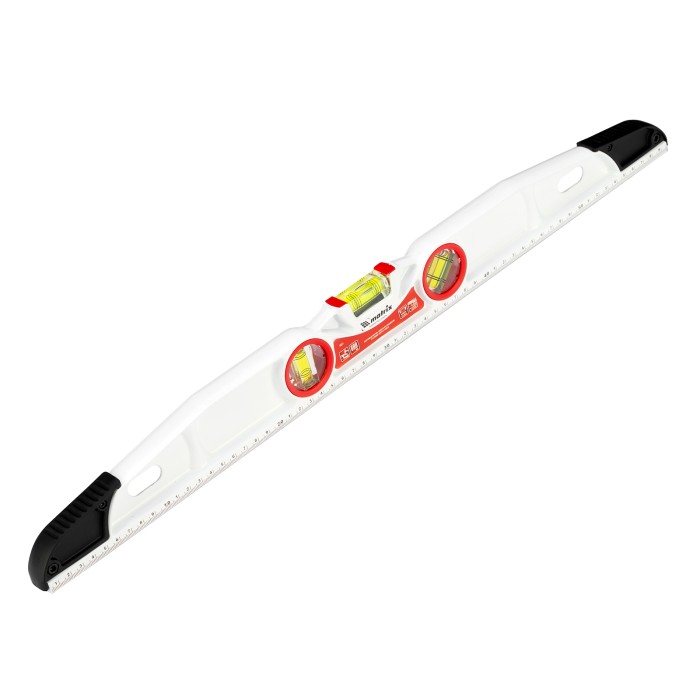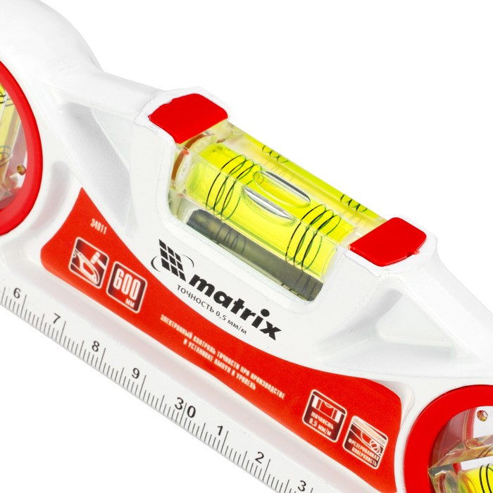 Уровень алюминиевый литой Matrix 34911 длиной 600 мм, с фрезерованной рабочей частью, 3 глазками и двумя ударными площадками, предназначен для проверки поверхностей на отклонение от горизонтали, вертикали и угла 45°. Инструмент значительно повышает точность проводимых работ, пригодится частному мастеру и профессионалу на строительной площадке, во время ремонта и для проведения монтажных работ.ПреимуществаПрочность и коррозионная стойкость — уровень изготовлен из алюминиевого профиля.Точные результаты — пузырьковые ампулы прошли электронную калибровку, нижняя грань фрезерована, что снизило погрешность до 0,5 мм/м.Возможность дополнительного выравнивания материалов — две ударные площадки позволяют наносить удары небольшой резиновой киянкой.Определение расстояний и размеров предметов — на корпусе имеется измерительная шкала.Для определения отклонения от вертикали 90° необходимо использовать пузырьковую ампулу только в верхнем положении уровня. Только базовая поверхность (противоположная ампуле 180°) является рабочей.