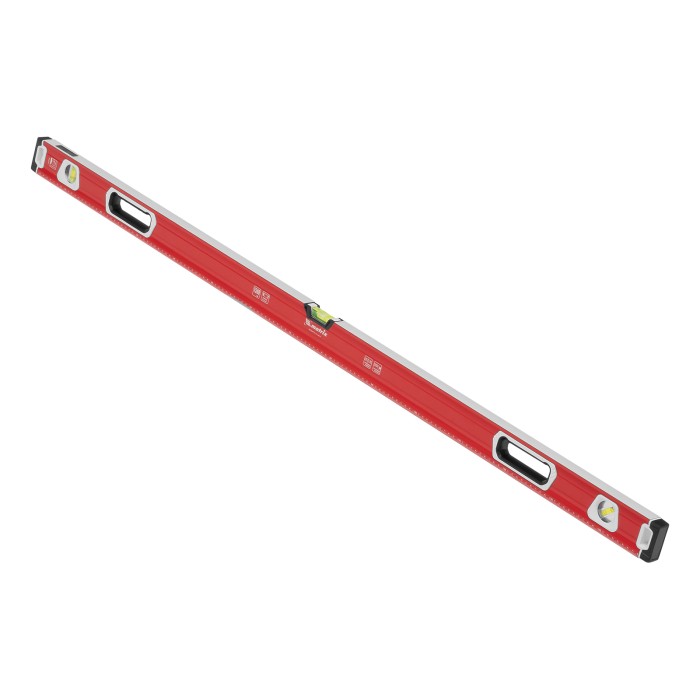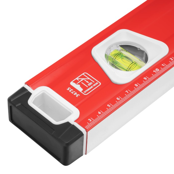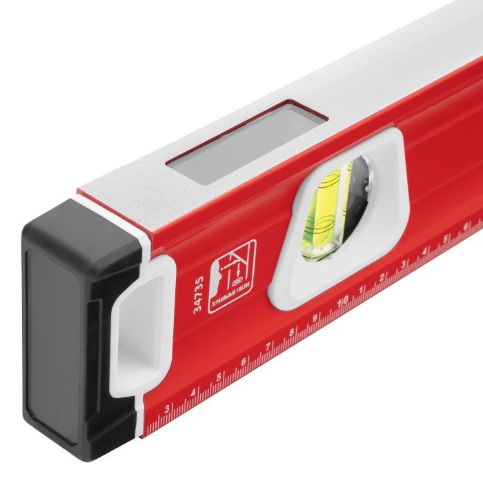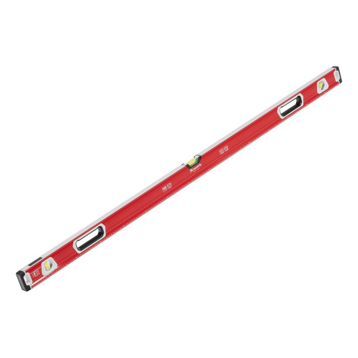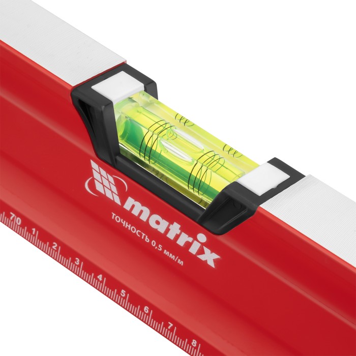 Уровень алюминиевый фрезерованный Matrix 34735 длиной 1500 мм, с магнитной полосой и 2-компонентными рукоятками, 3 глазками и 1 зеркальным отражателем, — измерительный инструмент для контроля отклонений поверхностей от горизонтали, вертикали и угла 45°. Используется для выполнения работ, требующих высокой точности.ПреимуществаПрочность и долговечность — корпус изготовлен из алюминиевого профиля, устойчивого к образованию коррозии.Высокая точность проводимых работ — электронная калибровка глазков уровня и фрезеровка рабочей грани позволили снизить погрешность измерений до 0,5 мм/м.Продуманная конструкция — в корпусе имеются рукоятки для удобного захвата инструмента и 2 отверстия для организации подвесного хранения.Дополнительные возможности — измерительная шкала на корпусе позволяет использовать уровень в качестве линейки.Для определения отклонения от вертикали 90° необходимо использовать пузырьковую ампулу только в верхнем положении уровня. Только базовая поверхность (противоположная ампуле 180°) является рабочей.
