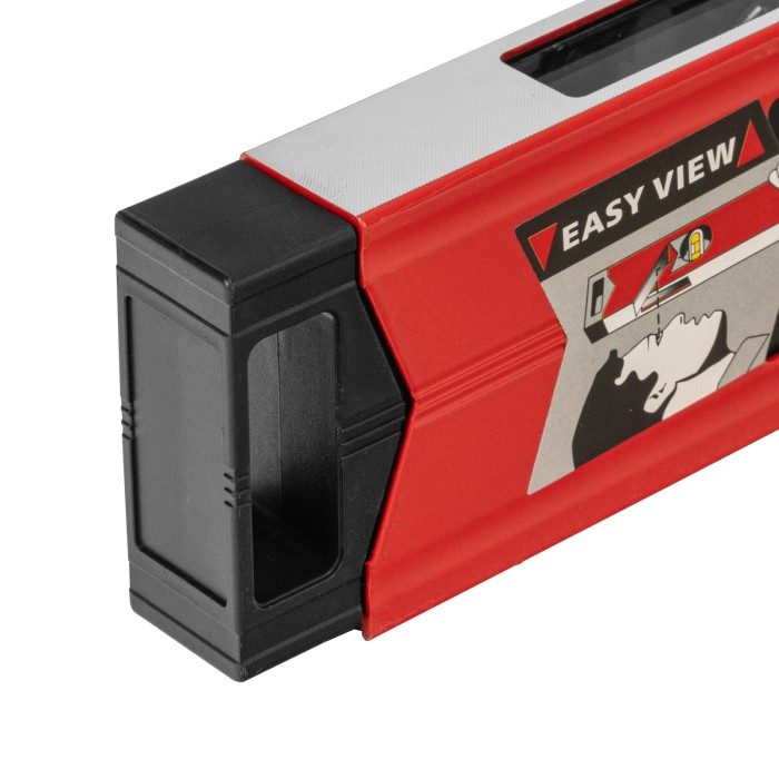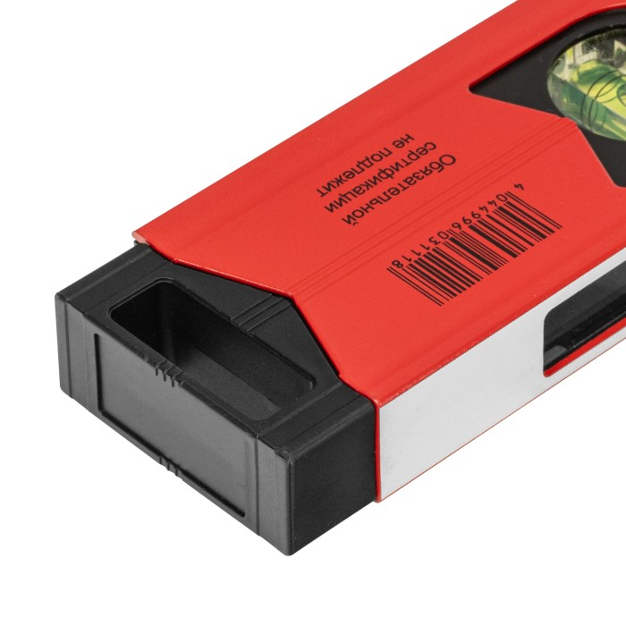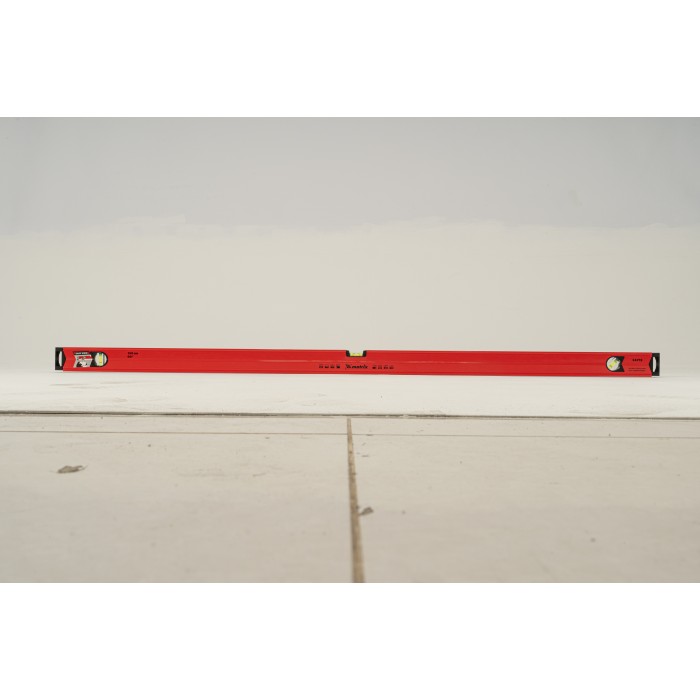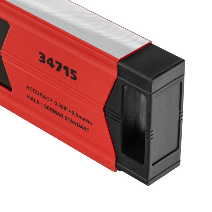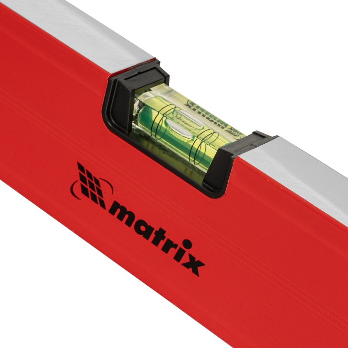 Уровень алюминиевый магнитный Matrix 34715 усиленной конструкции, длиной 1500 мм, с фрезерованной рабочей поверхностью, оснащен 3 глазками и одним зеркальным отражателем. Позволяет выявить отклонения от вертикали, горизонтали и угла 45°. Встроенный зеркальный глазок облегчает считывание показаний.ПреимуществаПрочность и долговечность — уровень из алюминиевого профиля, усиленный ребрами жесткости, рассчитан на интенсивное использование.Функциональность — магнитная полоса позволяет фиксировать инструмент на металлических поверхностях, что удобно во время сантехнических работ.Дополнительная защита — торцевые заглушки предохраняют инструмент от механических воздействий и попадания мусора.Удобное хранение — в заглушках имеются отверстия для подвешивания уровня.Для определения отклонения вертикали в 90° необходимо использовать пузырьковую ампулу только в верхнем положении уровня. Только базовая поверхность (противоположная ампуле 180°) является рабочей.