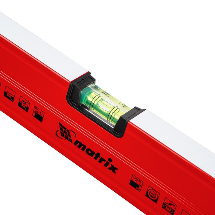 Уровень алюминиевый магнитный Matrix 34720 усиленной конструкции, длиной 2000 мм, с фрезерованной рабочей поверхностью, оснащен 3 глазками и одним зеркальным отражателем. Позволяет выявить отклонения от вертикали, горизонтали и угла 45°. Встроенный зеркальный глазок облегчает считывание показаний.ПреимуществаПрочность и долговечность — уровень из алюминиевого профиля, усиленный ребрами жесткости, рассчитан на интенсивное использование.Функциональность — магнитная полоса позволяет фиксировать инструмент на металлических поверхностях, что удобно во время сантехнических работ.Дополнительная защита — торцевые заглушки предохраняют инструмент от механических воздействий и попадания мусора.Удобное хранение — в заглушках имеются отверстия для подвешивания уровня.Для определения отклонения вертикали в 90° необходимо использовать пузырьковую ампулу только в верхнем положении уровня. Только базовая поверхность (противоположная ампуле 180°) является рабочей.