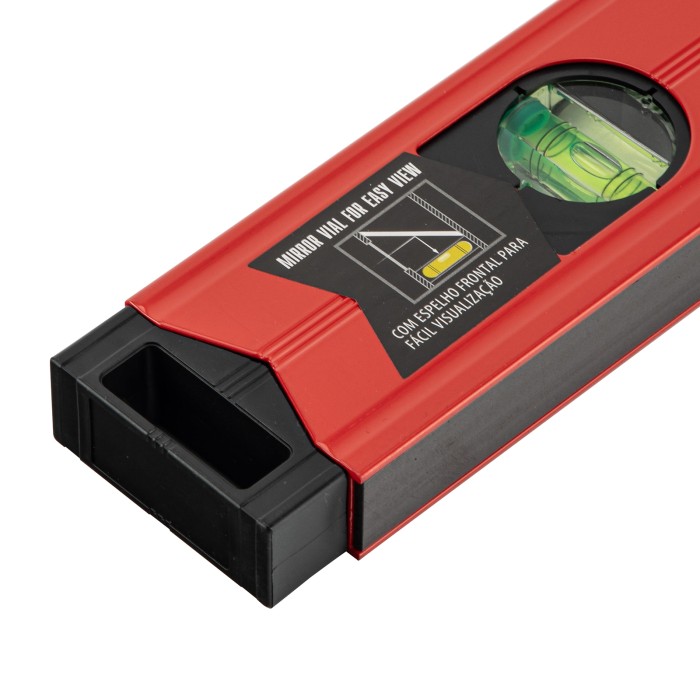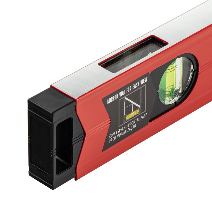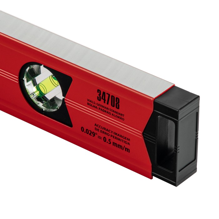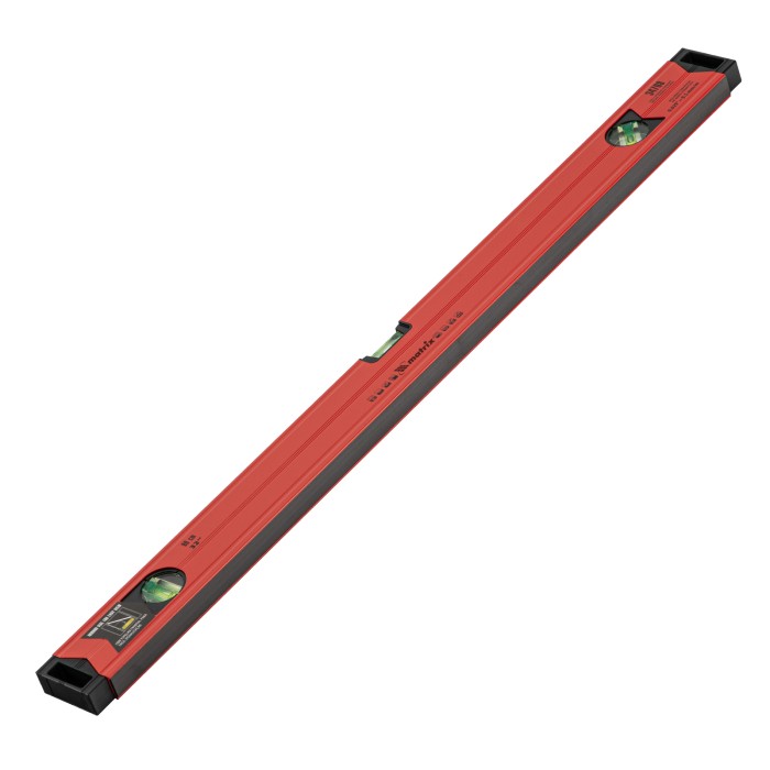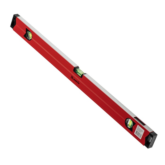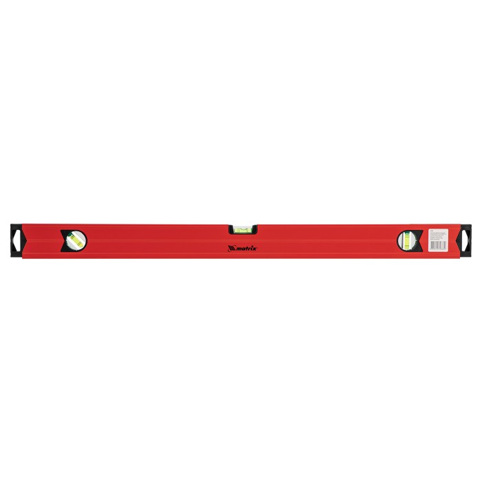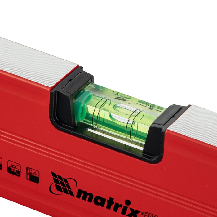Уровень алюминиевый магнитный Matrix 34708 усиленной конструкции, длиной 800 мм, с фрезерованной рабочей поверхностью, оснащен 3 глазками и одним зеркальным отражателем. Позволяет выявить отклонения от вертикали, горизонтали и угла 45°. Встроенный зеркальный глазок облегчает считывание показаний.ПреимуществаПрочность и долговечность — уровень из алюминиевого профиля, усиленный ребрами жесткости, рассчитан на интенсивное использование.Функциональность — магнитная полоса позволяет фиксировать инструмент на металлических поверхностях, что удобно во время сантехнических работ.Дополнительная защита — торцевые заглушки предохраняют инструмент от механических воздействий и попадания мусора.Удобное хранение — в заглушках имеются отверстия для подвешивания уровня.Для определения отклонения вертикали в 90° необходимо использовать пузырьковую ампулу только в верхнем положении уровня. Только базовая поверхность (противоположная ампуле 180°) является рабочей.