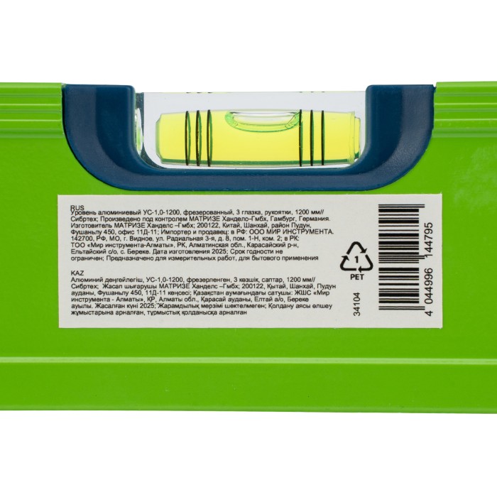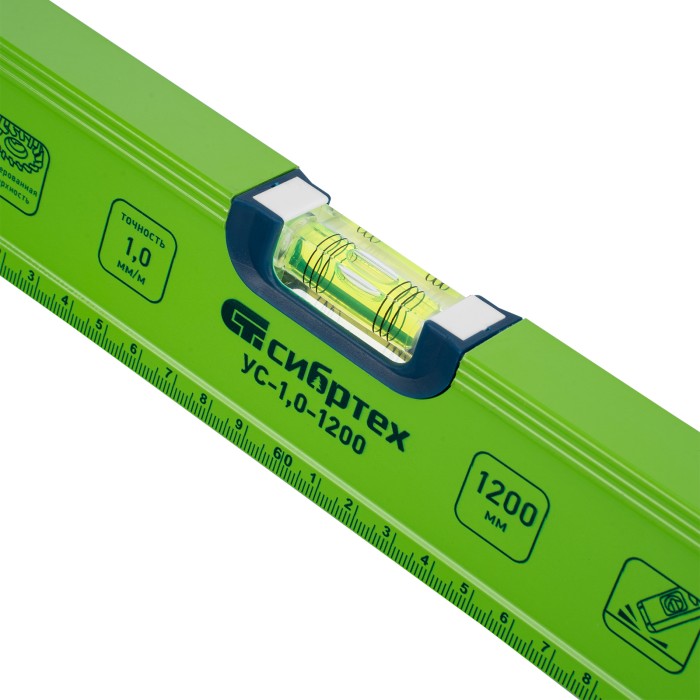 Уровень алюминиевый фрезерованный Сибртех УС-1,0-1200 34104 длиной 1200 мм, с 3 глазками и рукоятками, пригодится для проведения работ, требующих высокой точности. Поможет выявить отклонения от горизонтальной и вертикальной плоскостей и угла 45°. Используется во время строительных и отделочных работ, будет полезен начинающему мастеру и профессионалу.ПреимуществаПрочность и долговечность — инструмент изготовлен из алюминиевого профиля.Высокая точность — глазки установлены с использованием электронного контроля, фрезерованная рабочая часть уменьшает погрешность при выполнении измерений.Дополнительные возможности — измерительная шкала позволяет определять габариты заготовок, полок и т.д.Комфортная работа — благодаря рукояткам инструмент легко удерживать.Для определения отклонения вертикали 90° необходимо использовать пузырьковую ампулу только в верхнем положении уровня. Только базовая поверхность (противоположная ампуле 180°) является рабочей.