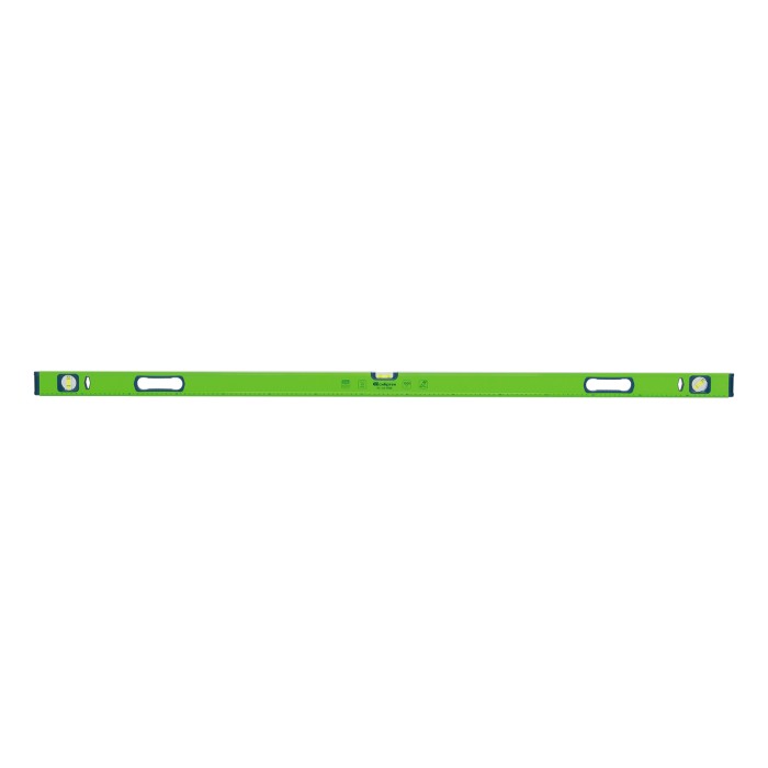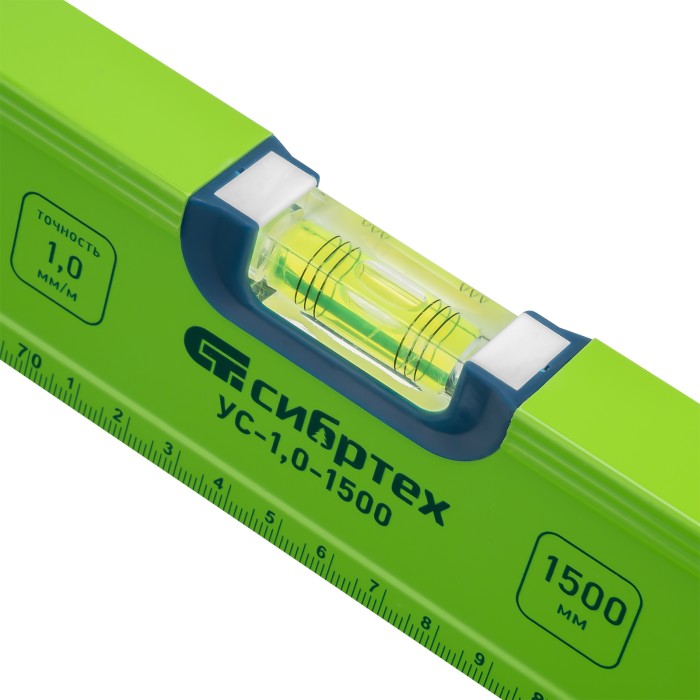 Уровень алюминиевый фрезерованный Сибртех УС-1,0-1500 34105 длиной 1500 мм, с 3 глазками и рукоятками, пригодится для проведения работ, требующих высокой точности. Поможет выявить отклонения от горизонтальной и вертикальной плоскостей и угла 45°. Используется во время строительных и отделочных работ, будет полезен начинающему мастеру и профессионалу.ПреимуществаПрочность и долговечность — инструмент изготовлен из алюминиевого профиля.Высокая точность — глазки установлены с использованием электронного контроля, фрезерованная рабочая часть уменьшает погрешность при выполнении измерений.Дополнительные возможности — измерительная шкала позволяет определять габариты заготовок, полок и т.д.Комфортная работа — благодаря рукояткам инструмент легко удерживать.Для определения отклонения вертикали 90° необходимо использовать пузырьковую ампулу только в верхнем положении уровня. Только базовая поверхность (противоположная ампуле 180°) является рабочей.