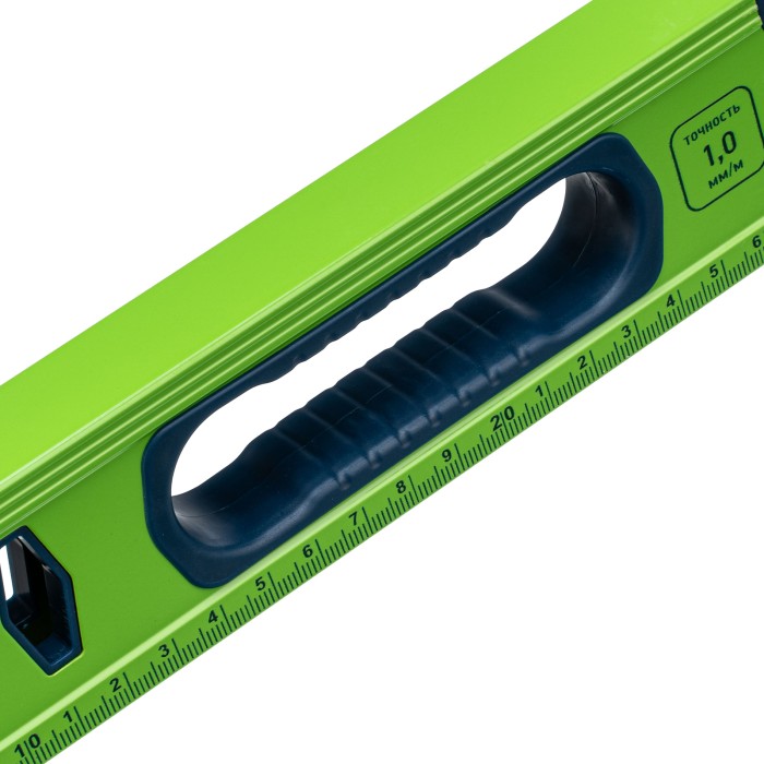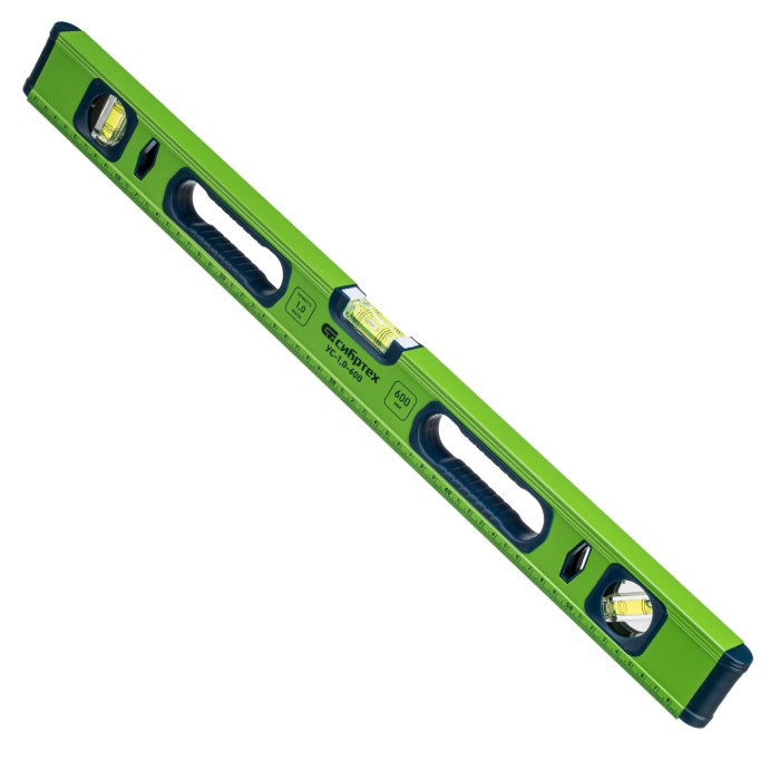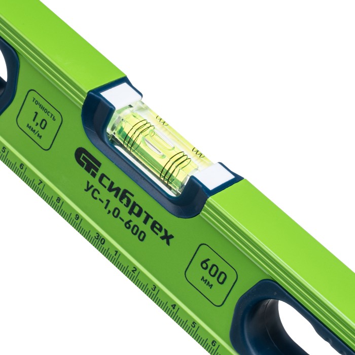 Уровень алюминиевый фрезерованный Сибртех УС-1,0-600 34101 длиной 600 мм, с 3 глазками и рукоятками, пригодится для проведения работ, требующих высокой точности. Поможет выявить отклонения от горизонтальной и вертикальной плоскостей и угла 45°. Используется во время строительных и отделочных работ, будет полезен начинающему мастеру и профессионалу.ПреимуществаПрочность и долговечность — инструмент изготовлен из алюминиевого профиля.Высокая точность — глазки установлены с использованием электронного контроля, фрезерованная рабочая часть уменьшает погрешность при выполнении измерений.Дополнительные возможности — измерительная шкала позволяет определять габариты заготовок, полок и т.д.Комфортная работа — благодаря рукояткам инструмент легко удерживать.Для определения отклонения вертикали 90° необходимо использовать пузырьковую ампулу только в верхнем положении уровня. Только базовая поверхность (противоположная ампуле 180°) является рабочей.
