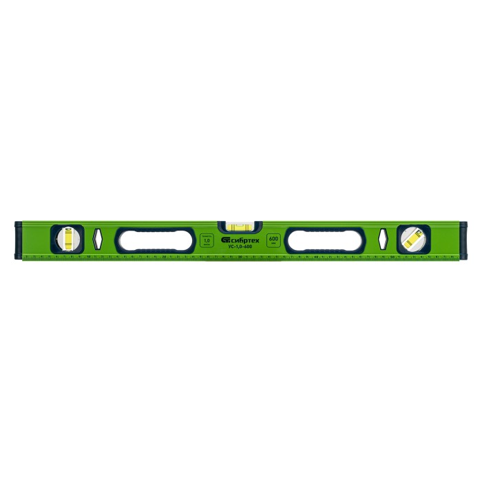 Уровень алюминиевый УС-1, 0-600, фрезерованный, 3 глазка, рукоятки, 600 мм Сибртех