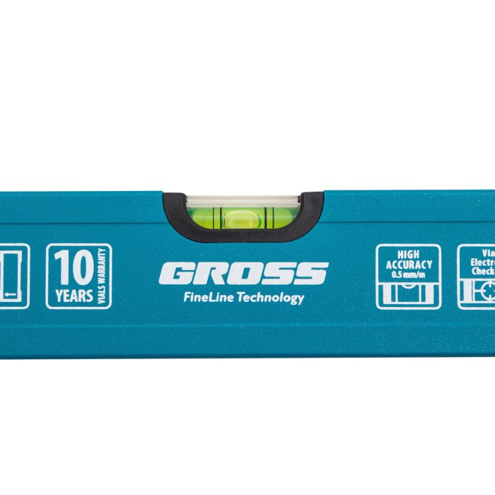 Уровень алюминиевый усиленный, 600 мм, 3 глазка Gross