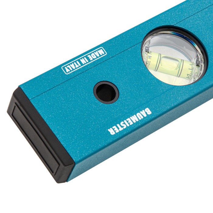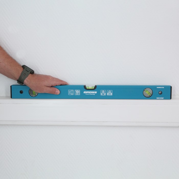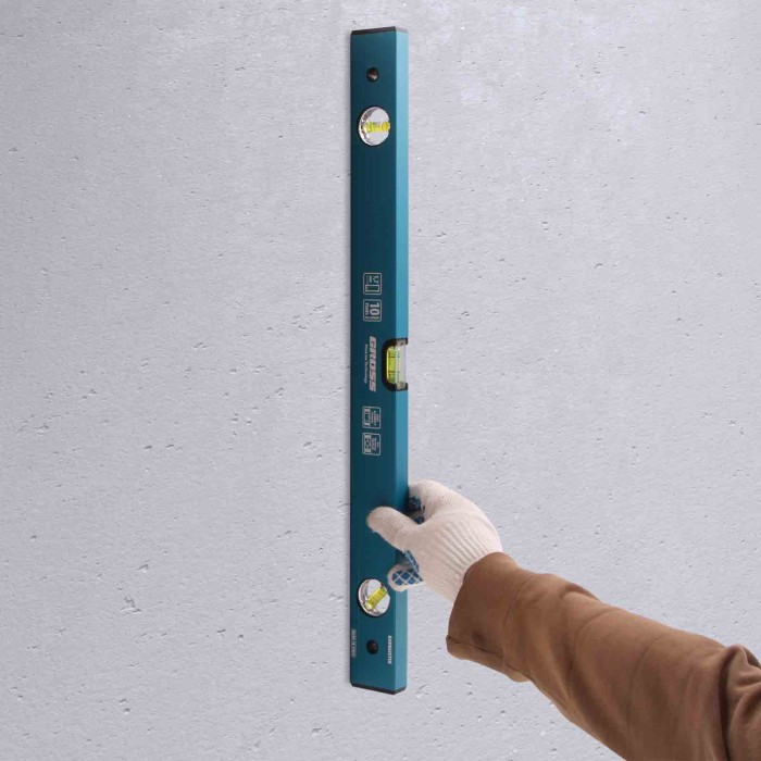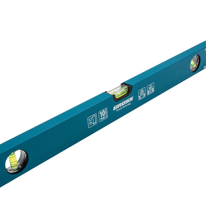 Усиленный алюминиевый уровень Gross 33625 длиной 600 мм, с 3 глазками, поможет найти отклонения от горизонтали и вертикали для повышения точности работы. Этот простой, но незаменимый для любого мастера инструмент пригодится на стройке, при проведении ремонтных и монтажных работ. Уровень с глазком на 45° позволяет измерить угол наклона, поэтому также пригодится при кровельных работах, проверке откосов и различных наклонных поверхностей.ПреимуществаПротивоударная конструкция — колбы из полистирола обладают высокой стойкостью к механическим воздействиям, поэтому инструмент выдерживает падения с небольшой высоты.Защитное порошковое покрытие — инструмент устойчив к воздействию агрессивных сред.Качественное исполнение — уровень изготовлен в Италии на высокотехнологичном производстве, погрешность измерений составляет всего 0,5 мм/м.Для определения отклонения вертикали 90° необходимо использовать пузырьковую ампулу только в верхнем положении уровня. Только базовая поверхность является рабочей (противоположная ампуле 180°).