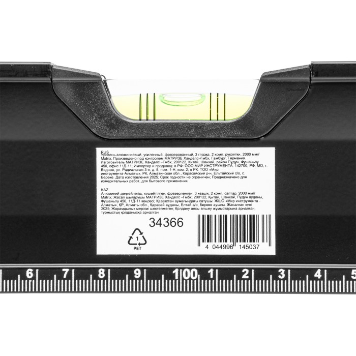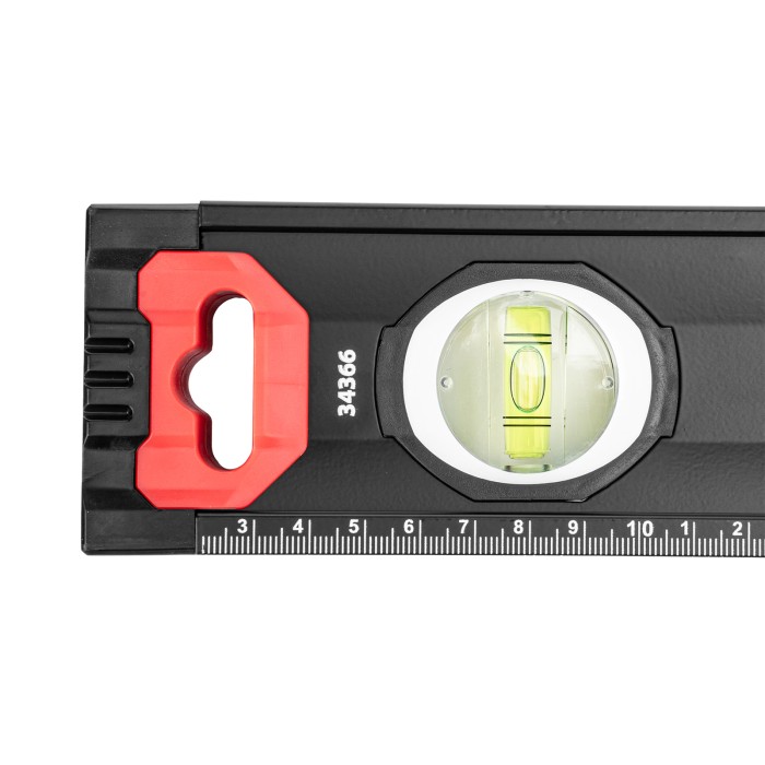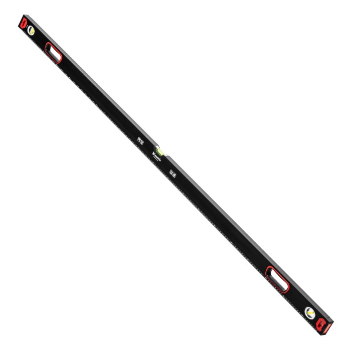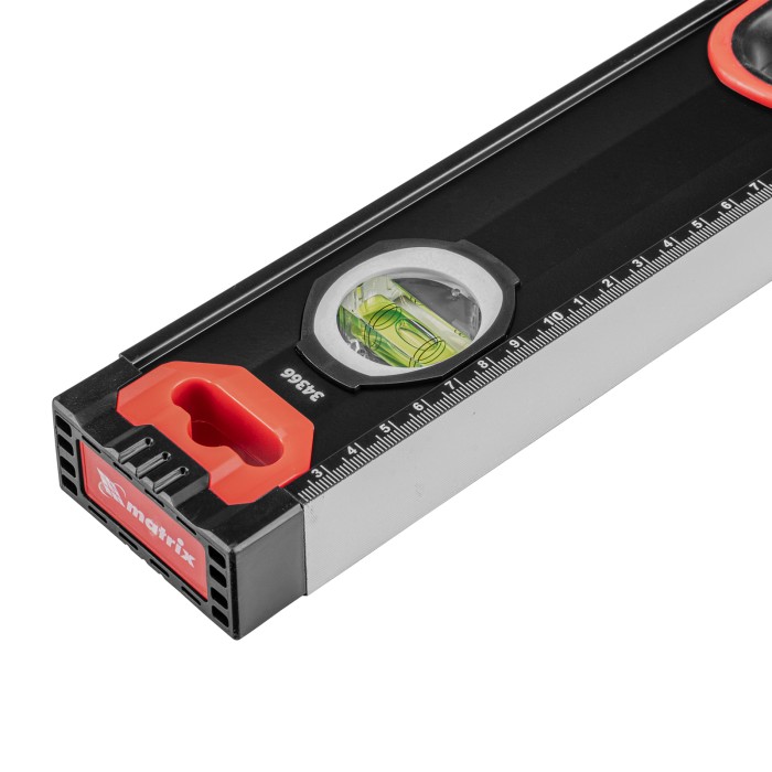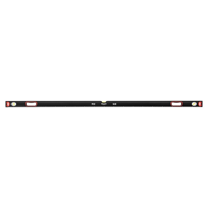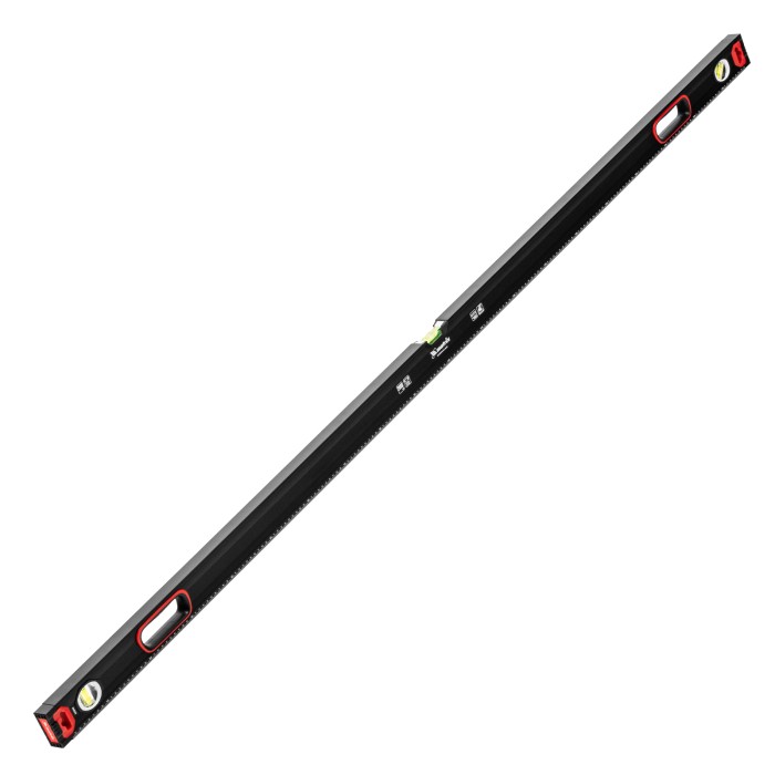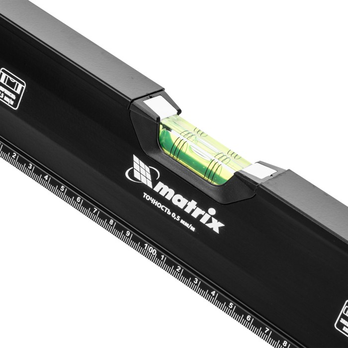 Уровень алюминиевый усиленный Matrix 34366 длиной 2000 мм, фрезерованный, с 3 глазками и двухкомпонентными рукоятками, служит для проверки горизонтальных, вертикальных поверхностей, а также точности угла 45°. Пригодится частному мастеру и профессионалу для проведения строительных, ремонтных и монтажных работ.ПреимуществаЛегкая и прочная конструкция — уровень выполнен из алюминиевого профиля.Высокая точность выполняемых работ — глазки прошли электронную калибровку, базовая поверхность фрезерована.Удобный захват — в корпусе имеются рукоятки с прорезиненными вставками.Дополнительные возможности — измерительная шкала позволяет использовать инструмент в качестве линейки.Для определения отклонения вертикали 90° необходимо использовать пузырьковую ампулу только в верхнем положении уровня. Только базовая поверхность (противоположная ампуле 180°) является рабочей.