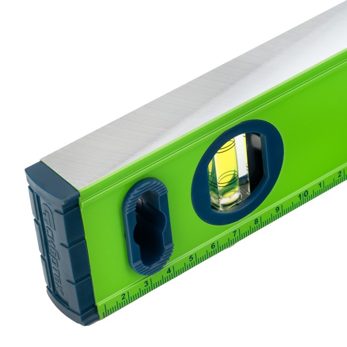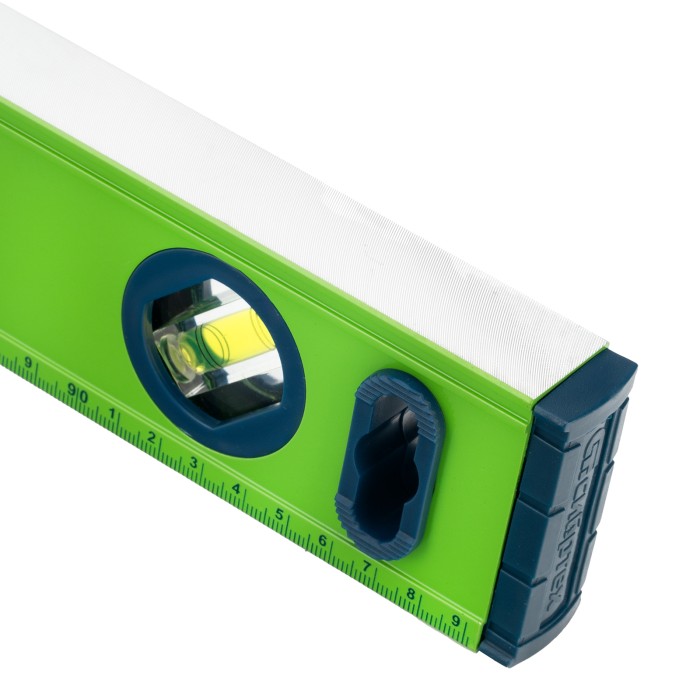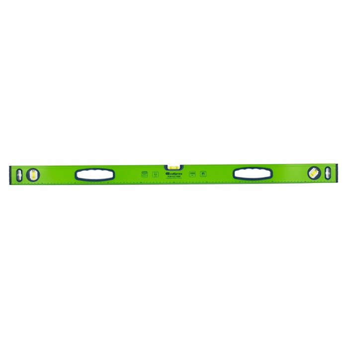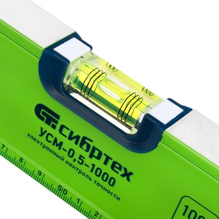Уровень алюминиевый магнитный Сибртех УСМ-0,5-1000 34117 длиной 1000 мм, фрезерованный, с рукоятками и 3 глазками, позволяет оценить ровность поверхностей и определить отклонения относительно горизонтали, вертикали и угла 45°. Будет полезен на строительной площадке, а также для выполнения работ по облицовке и отделке помещений, для монтажа конструкций.ПреимуществаВысокие прочностные характеристики — инструмент изготовлен из легкого алюминиевого профиля.Фиксация на металлических поверхностях — встроенные магниты позволяют освободить руки во время работы.Точные результаты — пузырьковые ампулы установлены при помощи электронного контроля, рабочая поверхность фрезерована, поэтому погрешность не превышает 0,5 мм/м.Комфортная работа — отверстия с подпальцевыми упорами обеспечивают надежный хват.Дополнительные возможности — измерительная шкала позволяет определять размеры предметов.Для определения отклонения вертикали 90° необходимо использовать пузырьковую ампулу только в верхнем положении уровня. Только базовая поверхность (противоположная ампуле 180°) является рабочей.