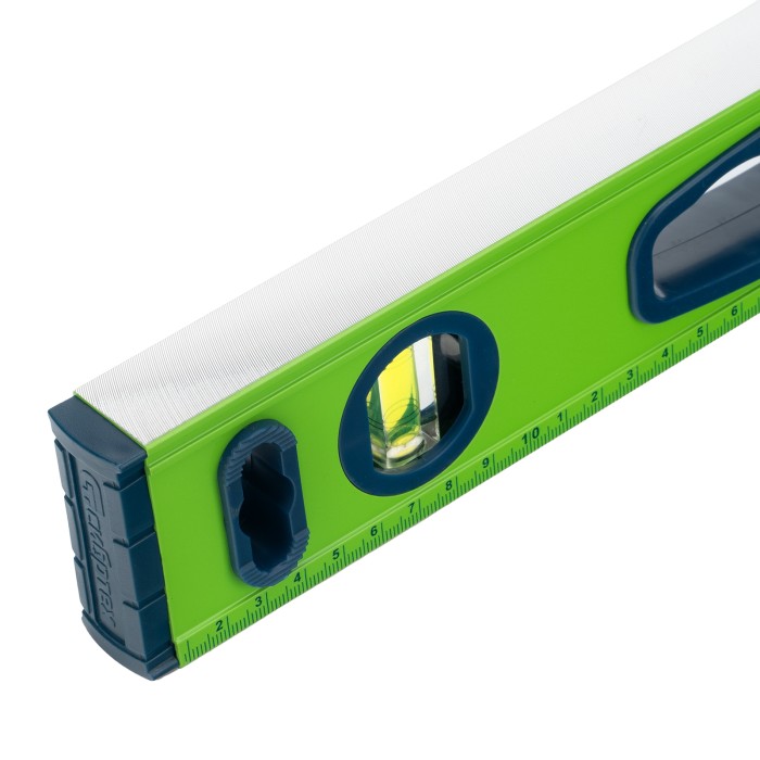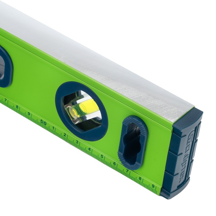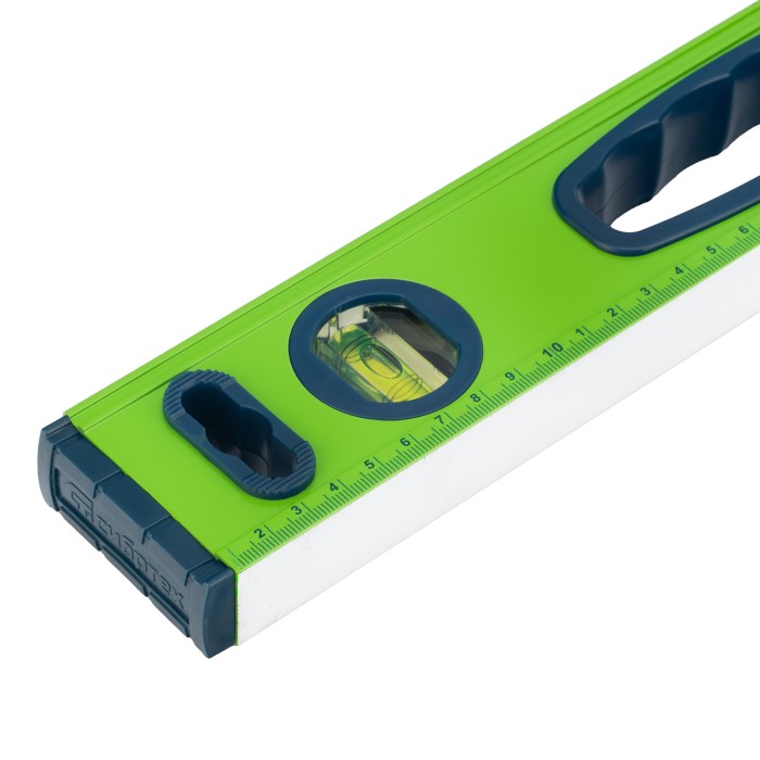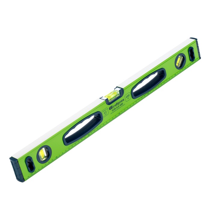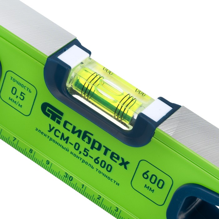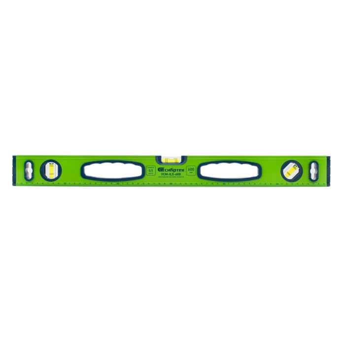 Уровень алюминиевый магнитный Сибртех УСМ-0,5-600 34114 длиной 600 мм, фрезерованный, с рукоятками и 3 глазками, позволяет оценить ровность поверхностей и определить отклонения относительно горизонтали, вертикали и угла 45°. Будет полезен на строительной площадке, а также для выполнения работ по облицовке и отделке помещений, для монтажа конструкций.ПреимуществаВысокие прочностные характеристики — инструмент изготовлен из легкого алюминиевого профиля.Фиксация на металлических поверхностях — встроенные магниты позволяют освободить руки во время работы.Точные результаты — пузырьковые ампулы установлены при помощи электронного контроля, рабочая поверхность фрезерована, поэтому погрешность не превышает 0,5 мм/м.Комфортная работа — отверстия с подпальцевыми упорами обеспечивают надежный хват.Дополнительные возможности — измерительная шкала позволяет определять размеры предметов.Для определения отклонения вертикали 90° необходимо использовать пузырьковую ампулу только в верхнем положении уровня. Только базовая поверхность (противоположная ампуле 180°) является рабочей.