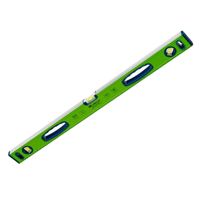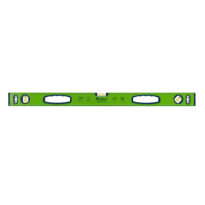 Уровень алюминиевый магнитный Сибртех УСМ-0,5-800 34116 длиной 800 мм, фрезерованный, с рукоятками и 3 глазками, позволяет оценить ровность поверхностей и определить отклонения относительно горизонтали, вертикали и угла 45°. Будет полезен на строительной площадке, а также для выполнения работ по облицовке и отделке помещений, для монтажа конструкций.ПреимуществаВысокие прочностные характеристики — инструмент изготовлен из легкого алюминиевого профиля.Фиксация на металлических поверхностях — встроенные магниты позволяют освободить руки во время работы.Точные результаты — пузырьковые ампулы установлены при помощи электронного контроля, рабочая поверхность фрезерована, поэтому погрешность не превышает 0,5 мм/м.Комфортная работа — отверстия с подпальцевыми упорами обеспечивают надежный хват.Дополнительные возможности — измерительная шкала позволяет определять размеры предметов.Для определения отклонения вертикали 90° необходимо использовать пузырьковую ампулу только в верхнем положении уровня. Только базовая поверхность (противоположная ампуле 180°) является рабочей.