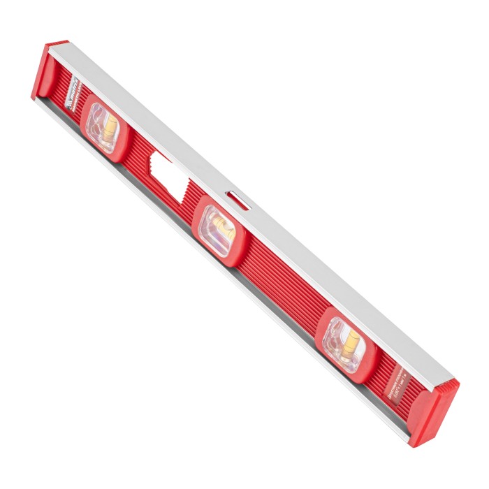 Магнитный уровень Matrix 33701 длиной 460 мм, с 3 глазками, — измерительный инструмент для проверки горизонтальных и вертикальных поверхностей. Пригодится на строительной площадке или в быту для выравнивания поверхностей, при монтаже конструкций, отделке помещений и выполнении других операций. Погрешность не превышает 1 мм на каждый метр (0,057°).ПреимуществаНадежная конструкция — корпус выполнен из пластмассы и легкого, но прочного алюминиевого каркаса.Удобная фиксация на металлических поверхностях — уровень снабжен встроенными магнитами.Защита от пыли и мелкого мусора — на торцах корпуса имеются пластиковые заглушки.Эргономичность — благодаря отверстию в корпусе уровень удобно удерживать.Для определения отклонения вертикали 90° необходимо использовать пузырьковую ампулу только в верхнем положении уровня. Только базовая поверхность (противоположная ампуле 180°) является рабочей.