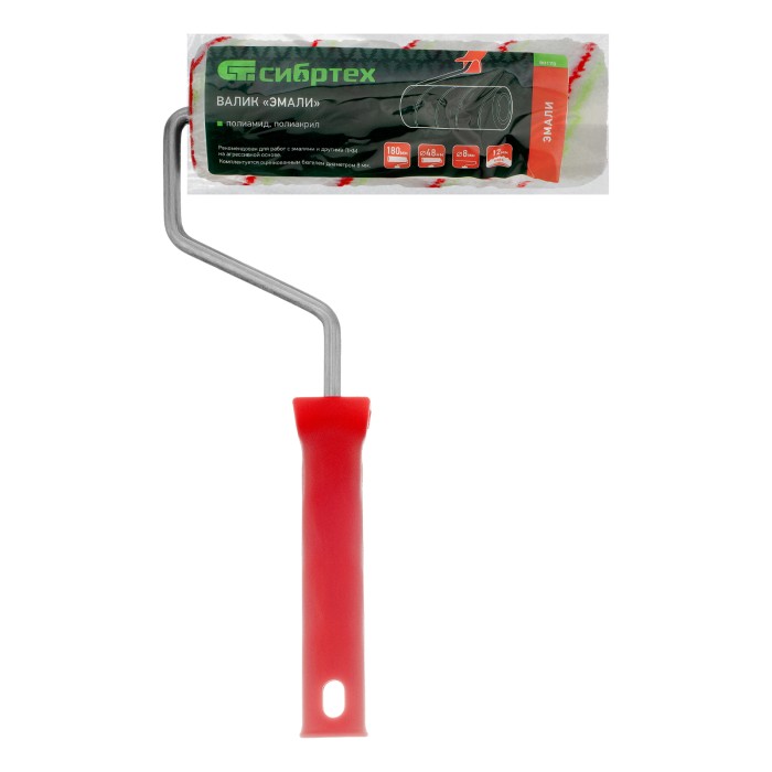 Валик "Эмали" , 180 мм, ворс 12 мм, D 48 мм, D ручки 8 мм, полиамид, полиакрил Сибртех