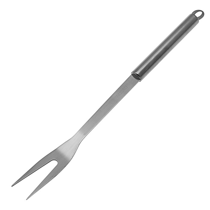 Вилка для барбекю Palisad Camping 69645 длиной 37 см, из нержавеющей стали, пригодится во время отдыха на природе или даче для приготовления пищи на гриле или в мангале. Ею удобно захватывать продукты для снятия с огня или переворачивания, а также протыкать их для проверки готовности.ПреимуществаНержавеющая сталь придает вилке стойкость к коррозии и долговечность.Вилка с удлиненной рукояткой не нагревается при случайном контакте с горячими поверхностями, что снижает риск получения ожогов.Отверстие в рукоятке позволяет подвешивать вилку для удобства хранения.