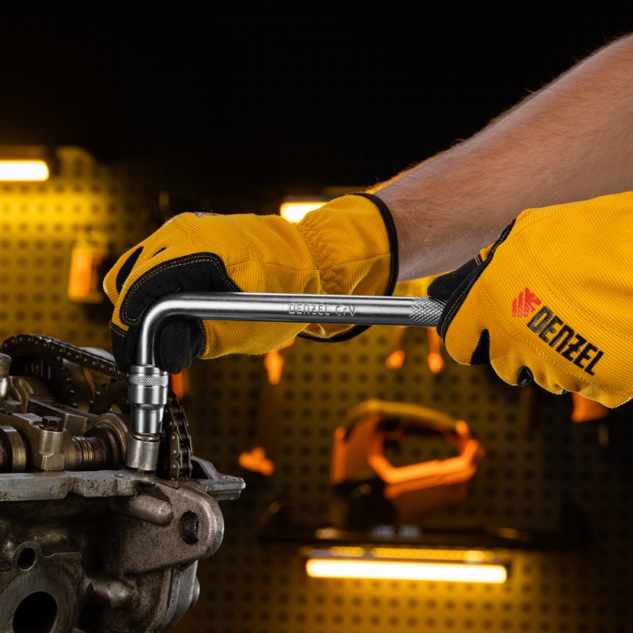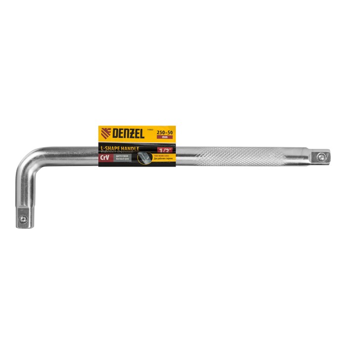 Г-образный вороток Denzel 14063 из стали CrV, размером 250 х 50 мм, с присоединительным квадратом 1/2", с покрытием «матовый хром», предназначен для ручного монтажа и демонтажа гаек, болтов и другого резьбового крепежа с...
