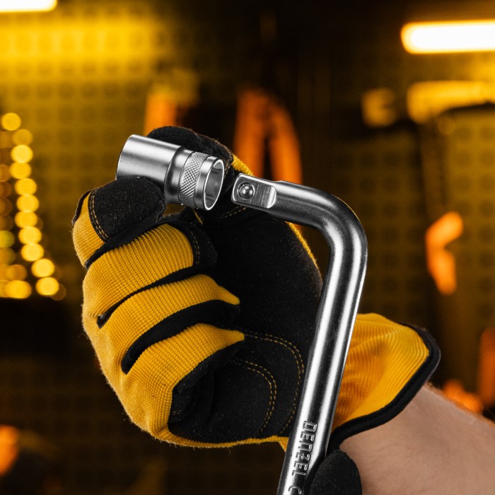 Г-образный вороток Denzel 14063 из стали CrV, размером 250 х 50 мм, с присоединительным квадратом 1/2", с покрытием «матовый хром», предназначен для ручного монтажа и демонтажа гаек, болтов и другого резьбового крепежа с...