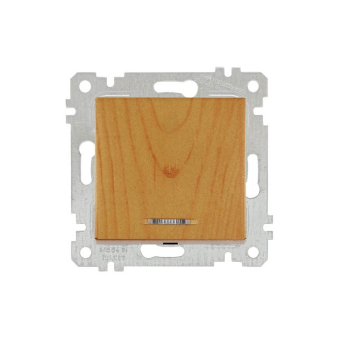 Выключатель 1-клав. (с подсветкой, скрытый, без рамки, винт. зажим) дуб, RITA, MUTLUSAN