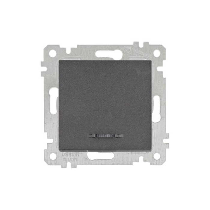 Выключатель 1-клав. (с подсветкой, скрытый, без рамки, винт. зажим) дымчатый, RITA, MUTLUSAN