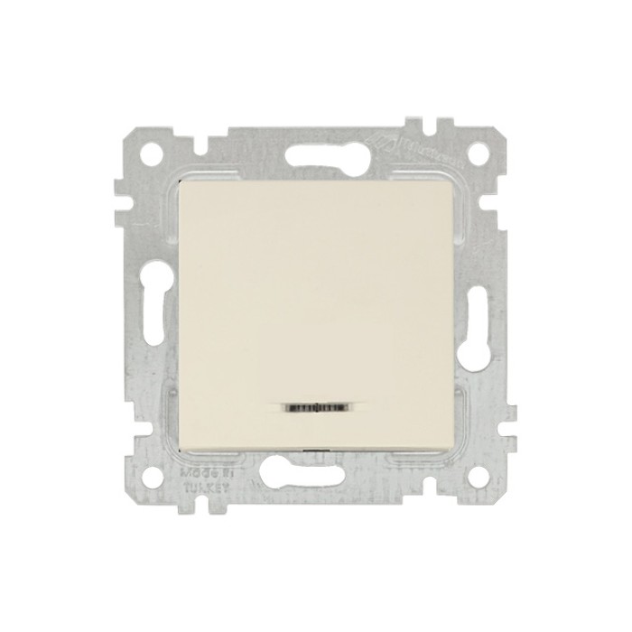 Выключатель 1-клав. (с подсветкой, скрытый, без рамки, винт. зажим) кремовый, RITA, MUTLUSAN