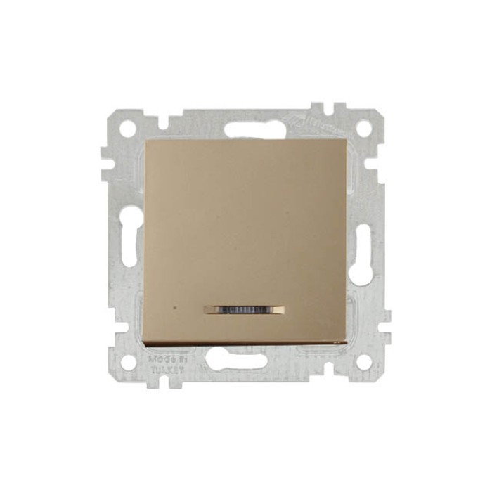 Выключатель 1-клав. (с подсветкой, скрытый, без рамки, винт. зажим) золото, RITA, MUTLUSAN