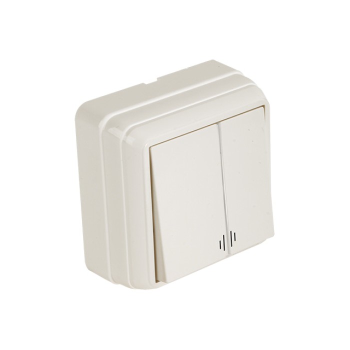 Выключатель 2-клав. (с подсветкой, открытый) кремовый, BRON, MUTLUSAN