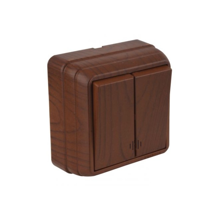 Выключатель 2-клав. (с подсветкой, открытый) орех, BRON, MUTLUSAN