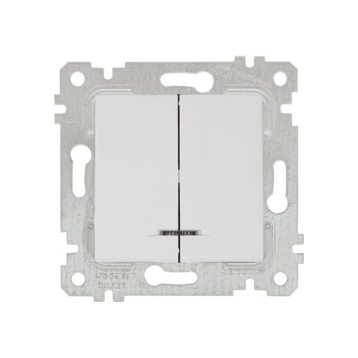 Выключатель 2-клав. (с подсветкой, скрытый, без рамки, винт. зажим) белый, RITA, MUTLUSAN