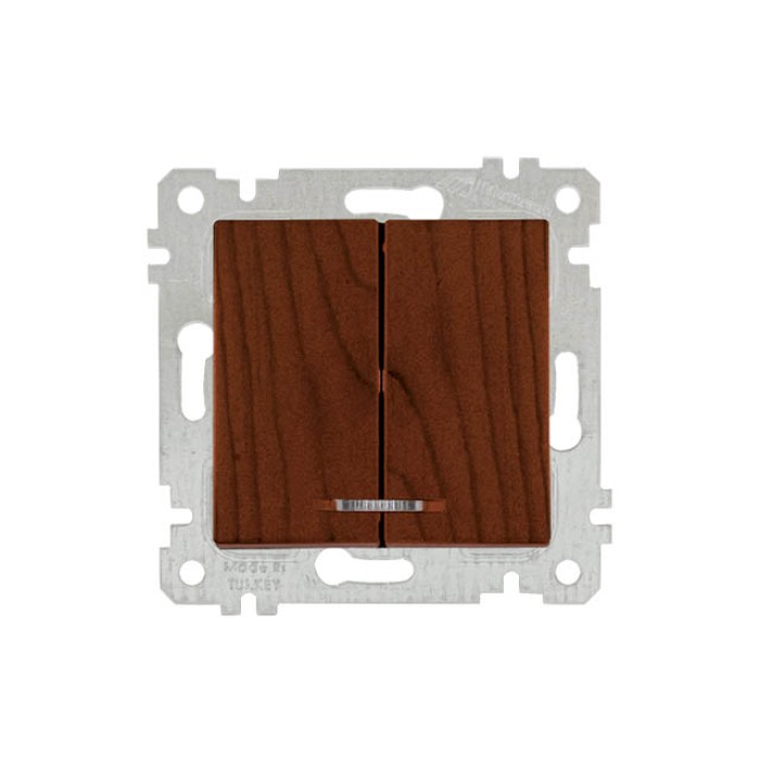 Выключатель 2-клав. (с подсветкой, скрытый, без рамки, винт. зажим) орех, RITA, MUTLUSAN