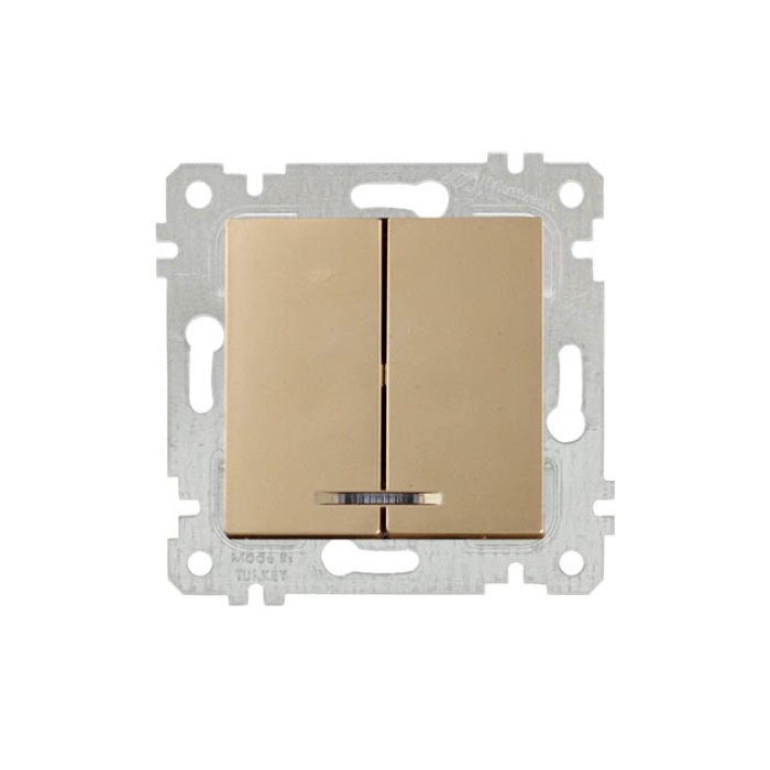 Выключатель 2-клав. (с подсветкой, скрытый, без рамки, винт. зажим) золото, RITA, MUTLUSAN