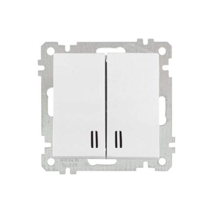 Выключатель 2-клав. (с подсветкой, скрытый, винт. зажим) белый, ELITRA, MUTLUSAN