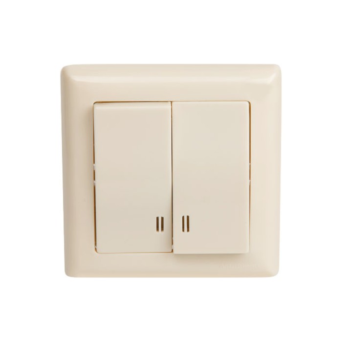 Выключатель 2-клав. (с подсветкой, скрытый, винт. зажим) кремовый, DARIA, MUTLUSAN