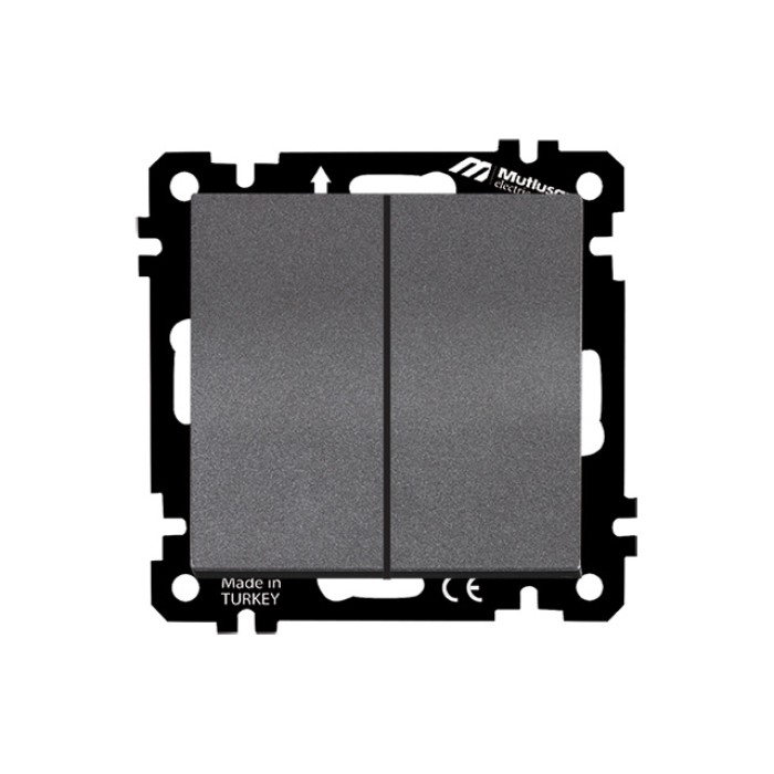 Выключатель 2-клав. (скрытый, без рамки, пруж. зажим) дымчатый, DARIA, MUTLUSAN