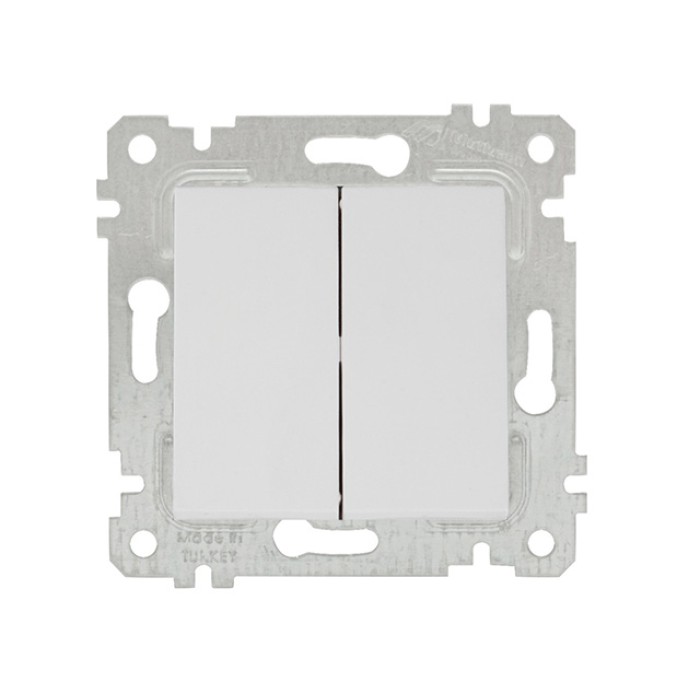 Выключатель 2-клав. (скрытый, без рамки, винт. зажим) белый, RITA, MUTLUSAN