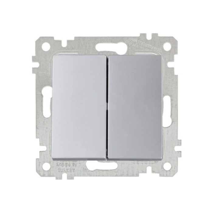 Выключатель 2-клав. (скрытый, без рамки, винт. зажим) серебро, RITA, MUTLUSAN