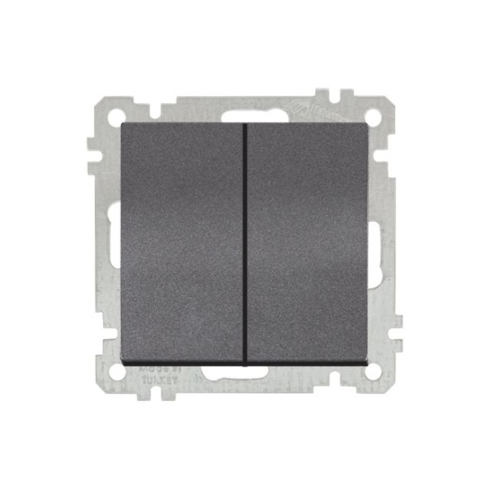 Выключатель 2-клав. (скрытый, винт. зажим) дымчатый, ELITRA, MUTLUSAN