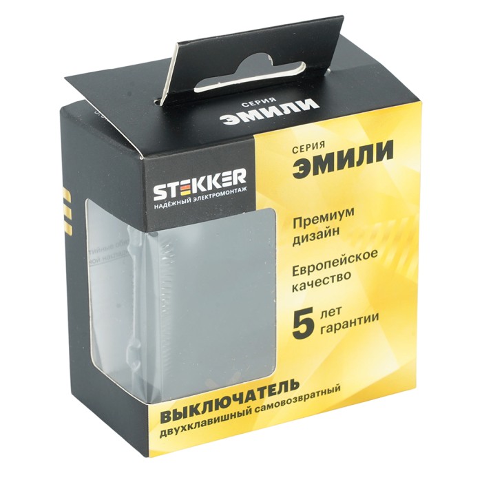 Выключатель 2-клавишный самовозвратный (механизм), STEKKER, 250В, 10А, серия Эмили, RSW10-5113-05, черный уголь, soft touch 50327