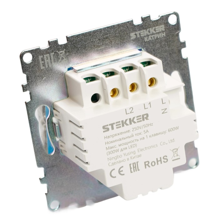 Выключатель 2-клавишный сенсорный (механизм) 250В, 5А, серия Катрин, белый 50275