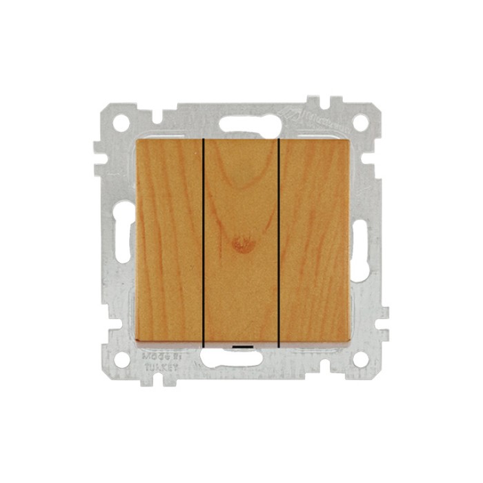 Выключатель 3-клав. (скрытый, без рамки, пруж. зажим) дуб, RITA, MUTLUSAN
